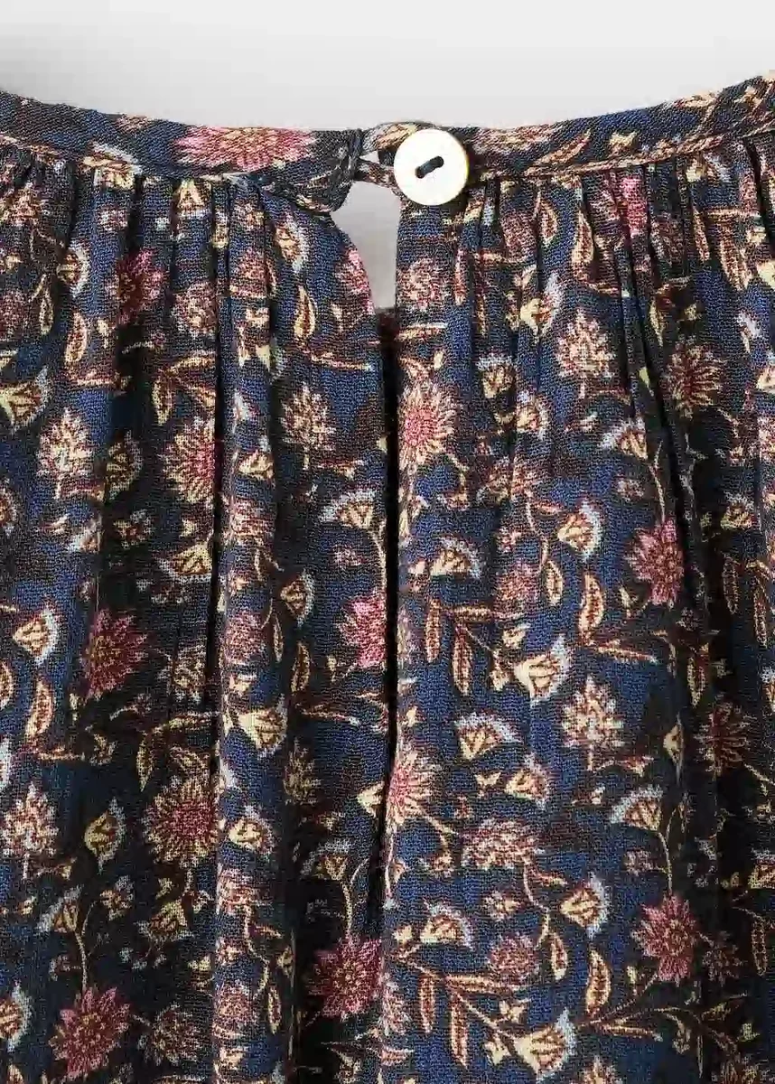 Stampa floreale. Girocollo. Maniche lunghe. Dettagli con volant. Modello corto. Chiusura con bottoni