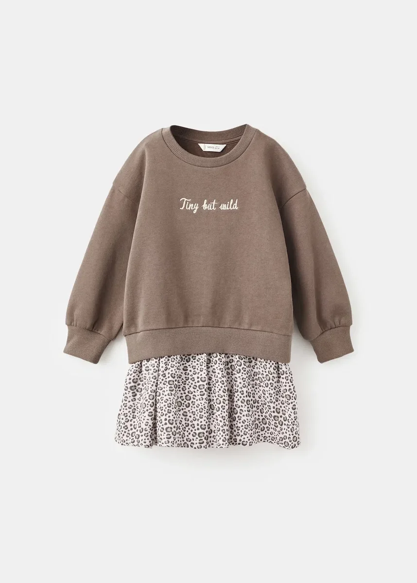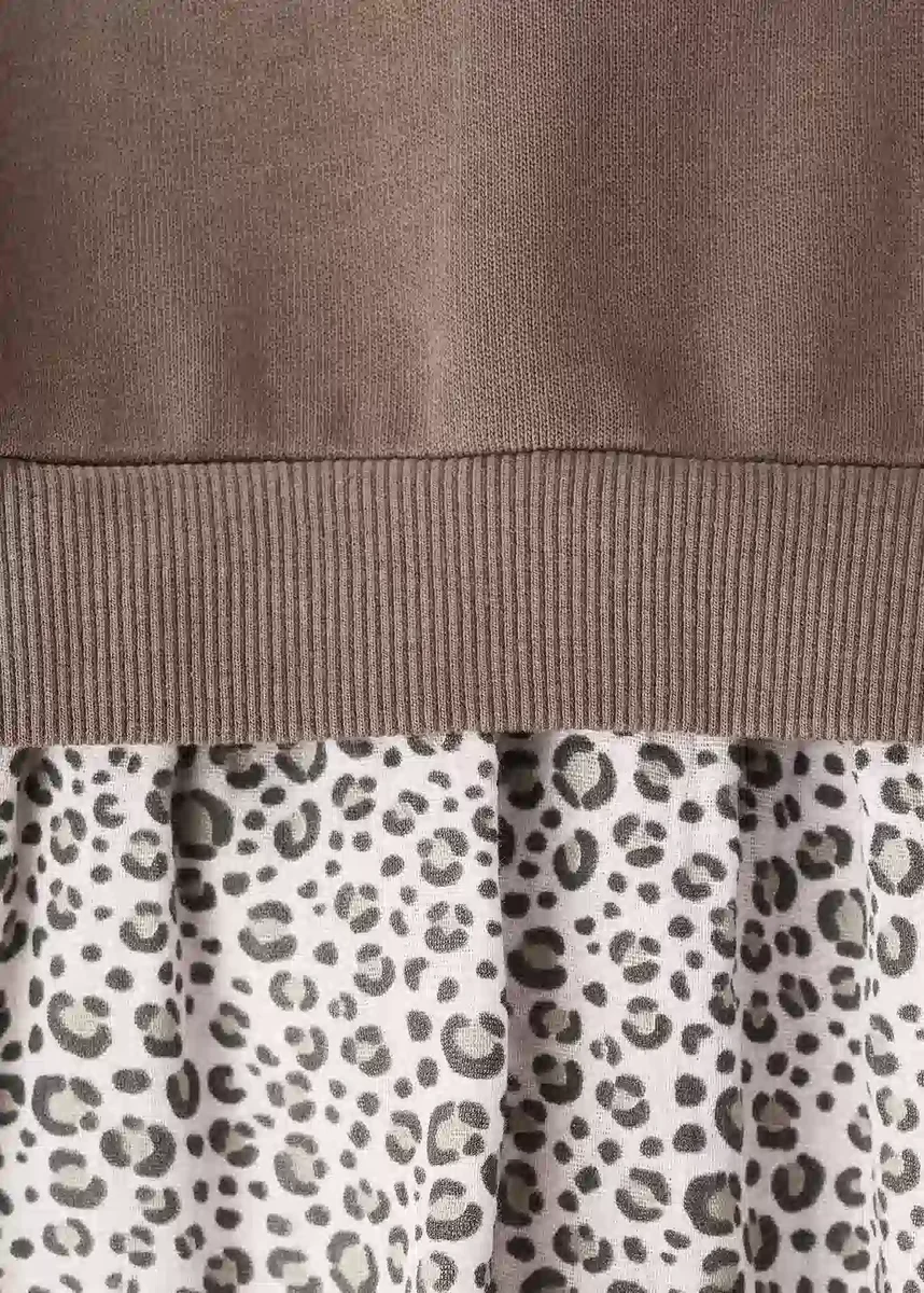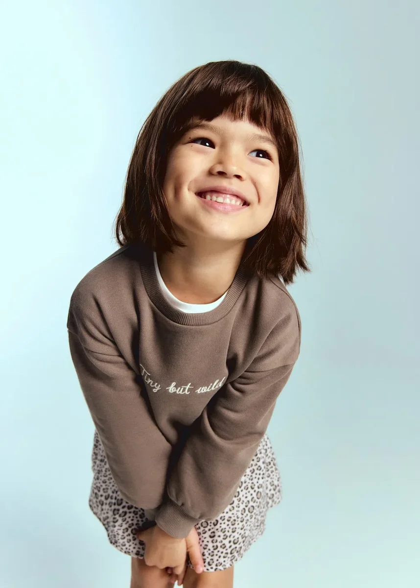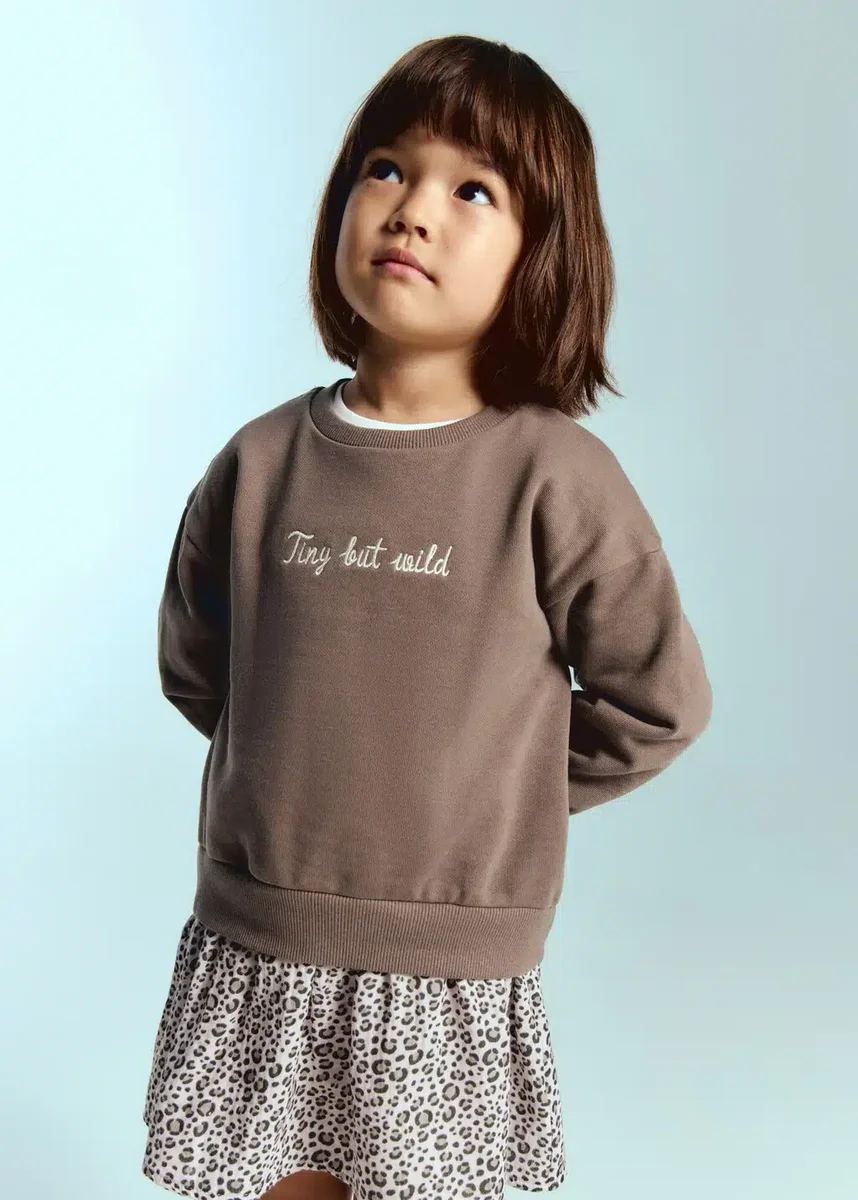 Tessuto 100% cotone. Disegno ricamato. Stampa leopardata. Scritta ricamata sul davanti. Girocollo. Maniche lunghe. Collo, polsini e orlo a costine. Black Friday
