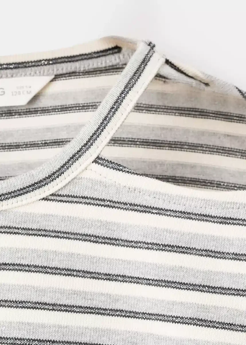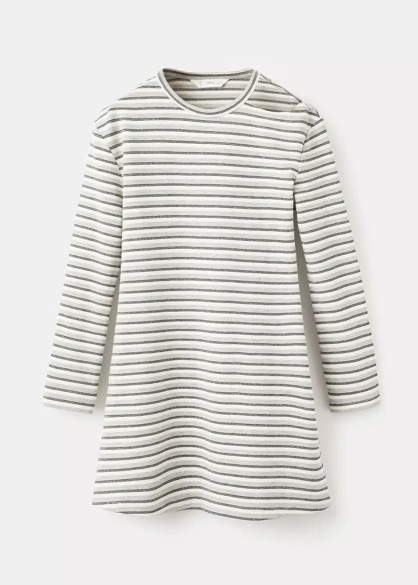 Tessuto in cotone. Tessuto lurex. Modello svasato. Design a righe. Dettagli cut-out. Girocollo. Maniche lunghe.