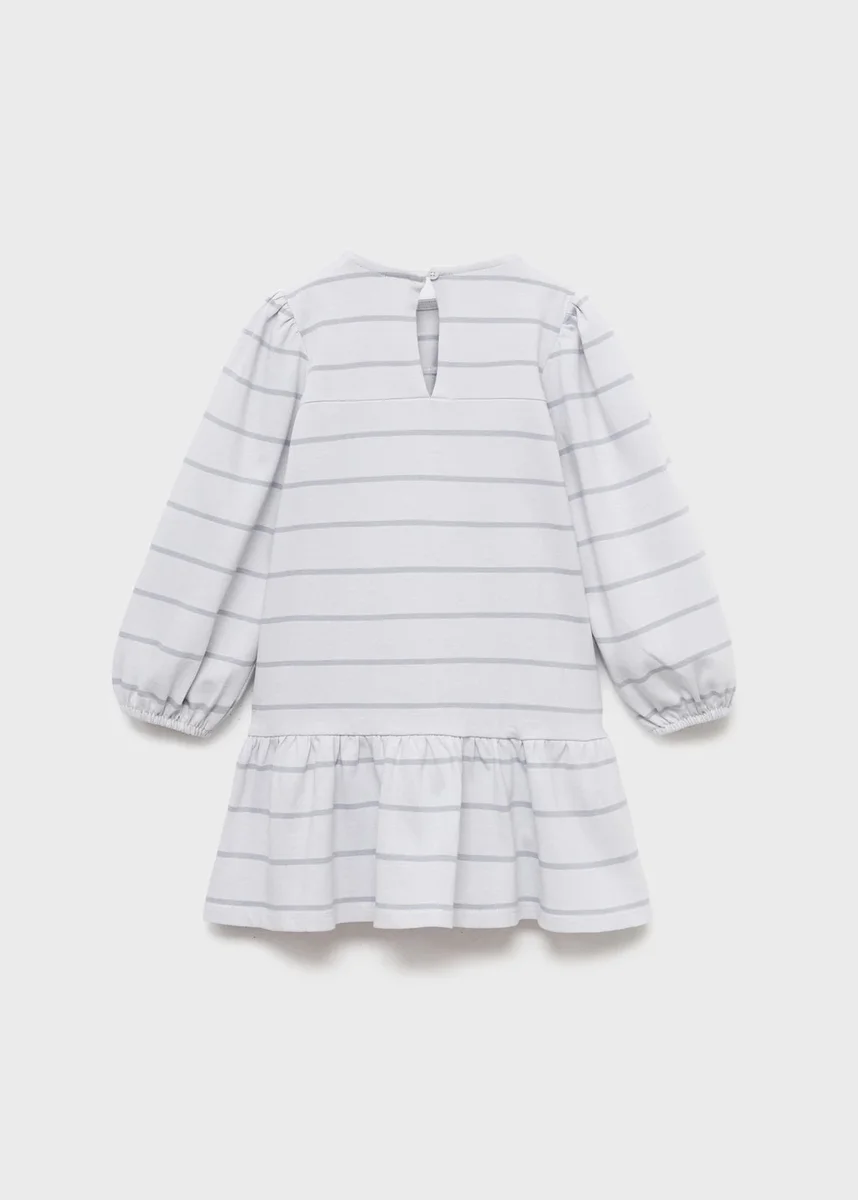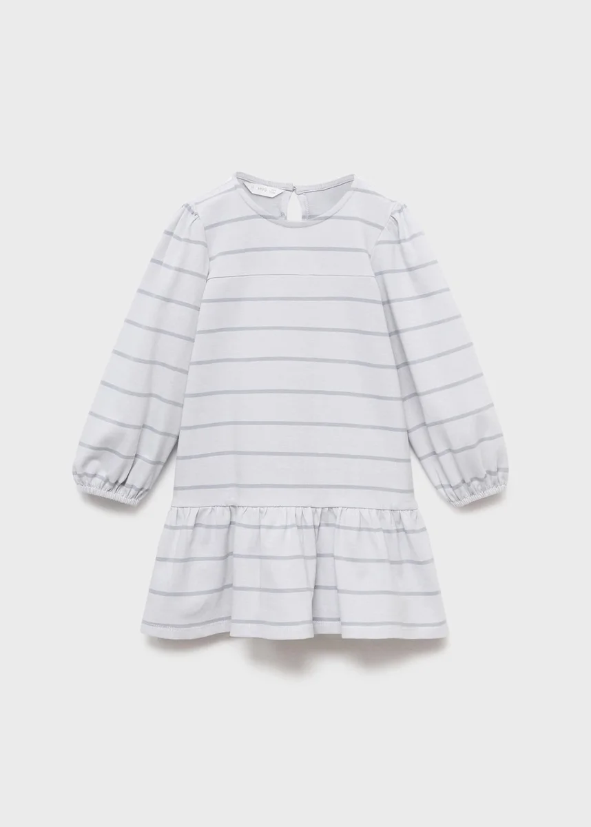 Tessuto 100% cotone. Tessuto a righe. Design svasato. Girocollo. Maniche lunghe con bordi a costine. Chiusura con bottoni sul retro. Orlo con volant