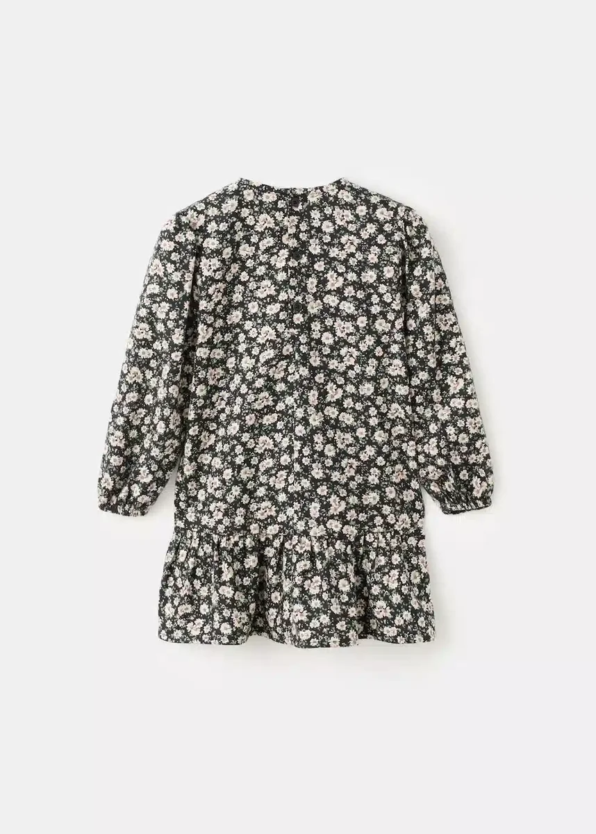 Tessuto fluido. Modello corto. Modello svasato. Girocollo. Maniche lunghe con polsini elasticizzati. Volant sul fondo. Black Friday
