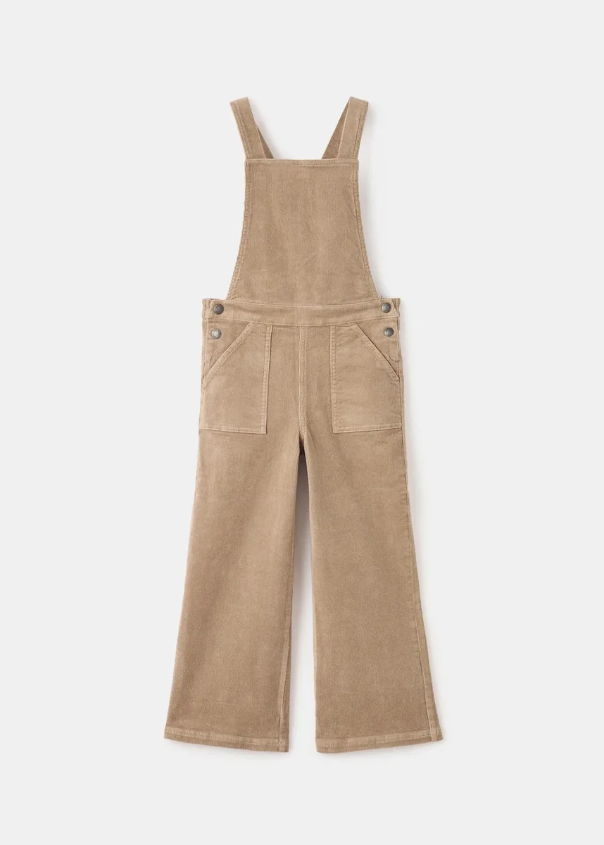 Tessuto in cotone. Tessuto in velluto a coste. Design lungo. Scollo dritto. Spalline incrociate sul retro. Spalline con chiusura a bottone. Chiusura con bottoni laterali. Due tasche laterali. Due tasche applicate sul retro.