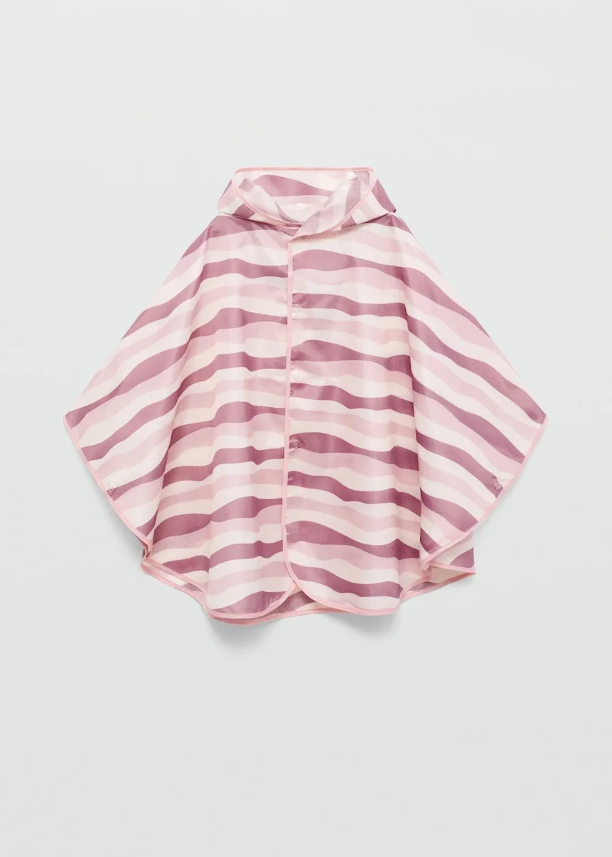Tessuto impermeabile. Design a strati. Con cappuccio. Chiusura frontale con bottoni.