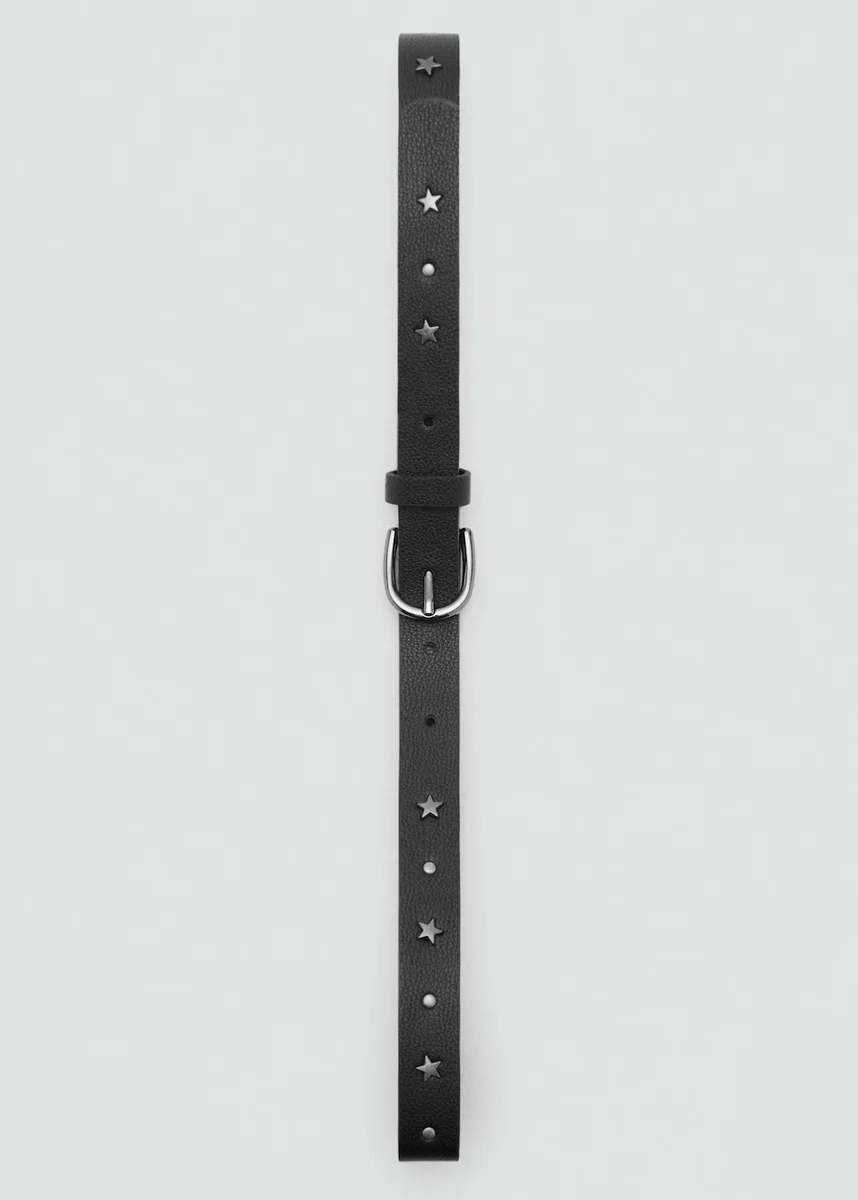 Design sottile. Chiusura con fibbia. Dettagli con borchie. Dettagli con stelle in metallo.