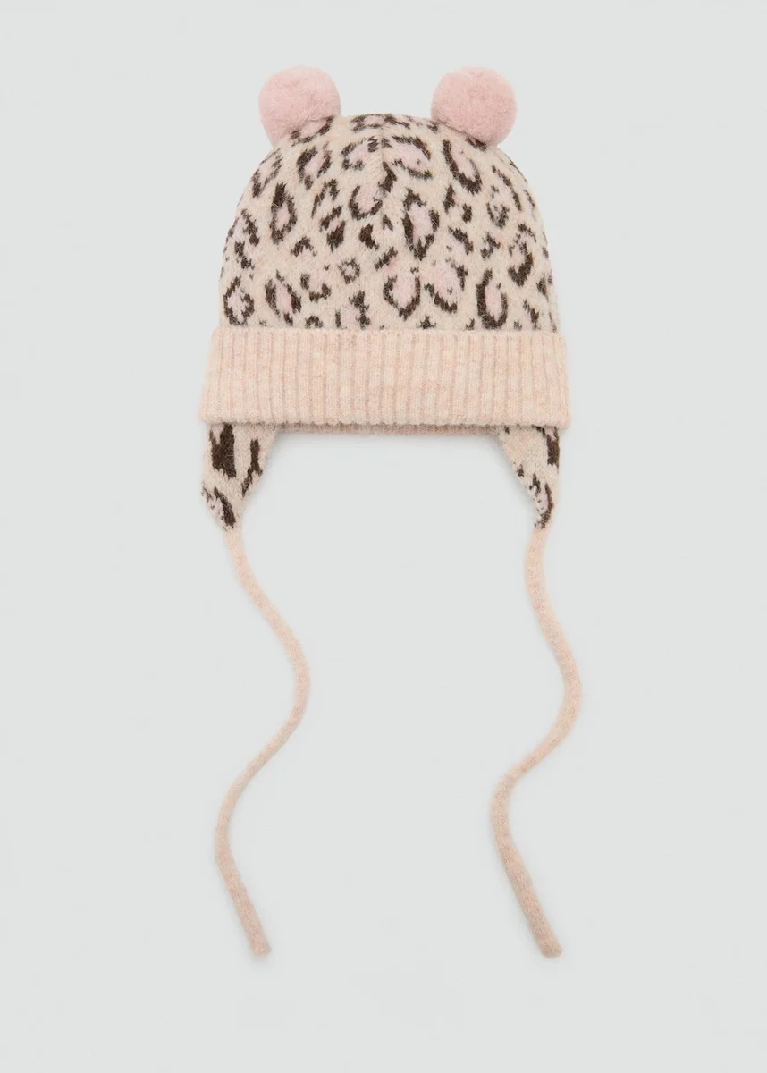 Tessuto in lana. Tessuto a maglia. Stampa leopardata. Nappine decorative. Motivo gattino. Chiusura con lacci. Maglione coordinato disponibile