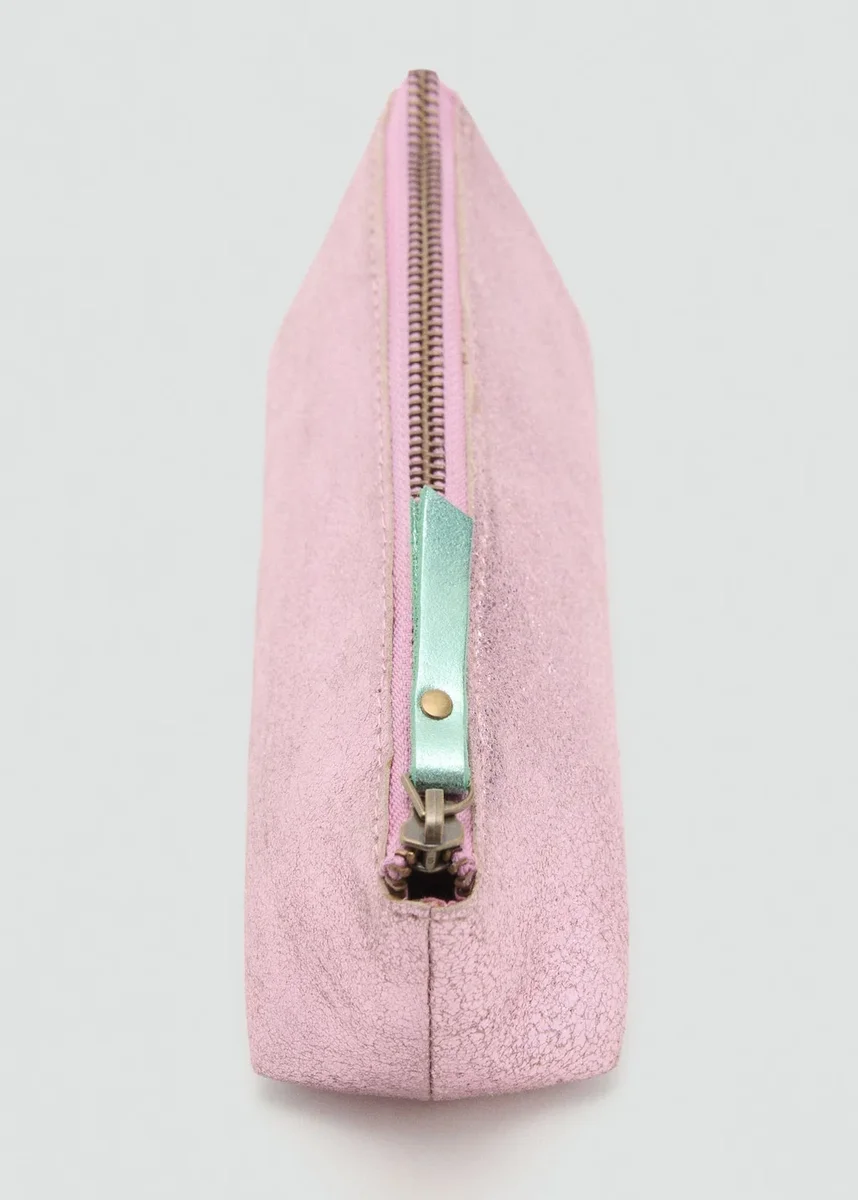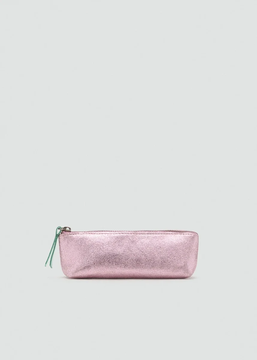 100% pelle bovina. Design rettangolare. Metallico. Chiusura con cerniera. Black Friday.
