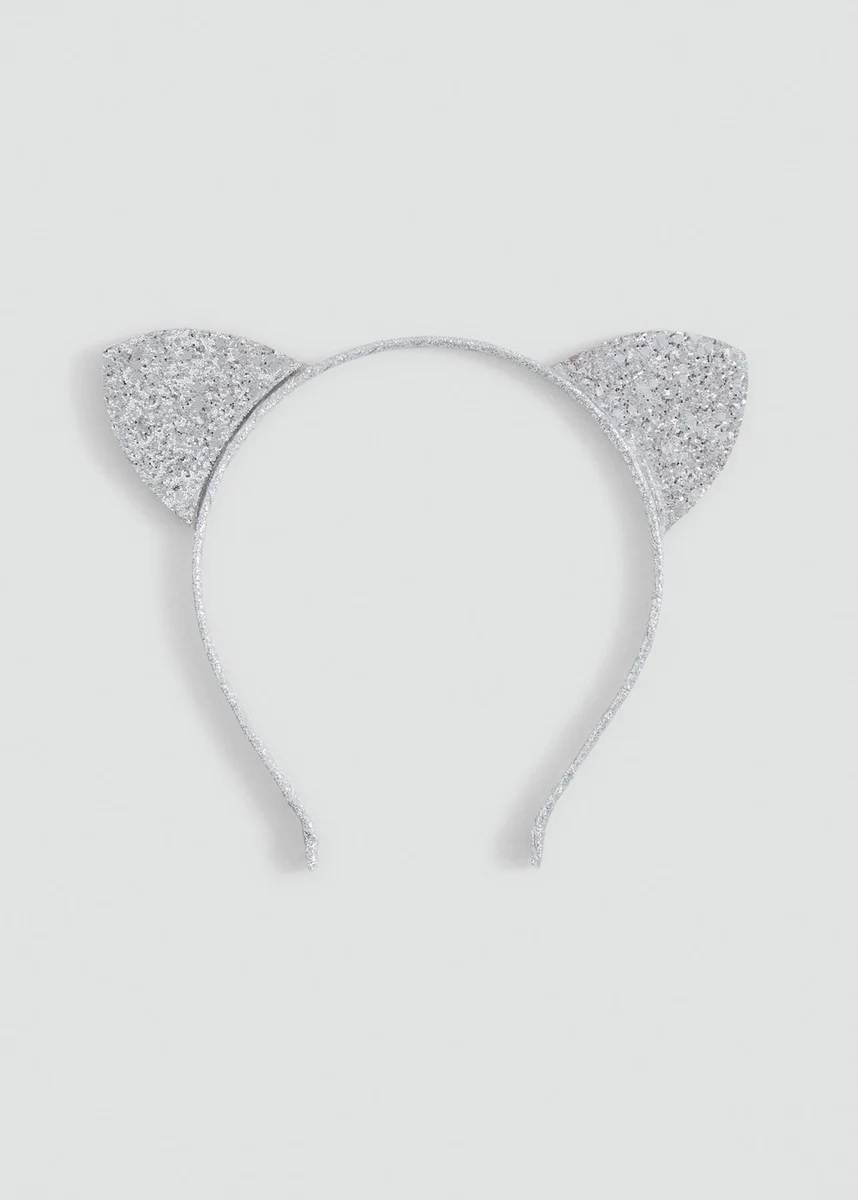Fascia per capelli. Design con gattino. Design con stelle glitterate.
