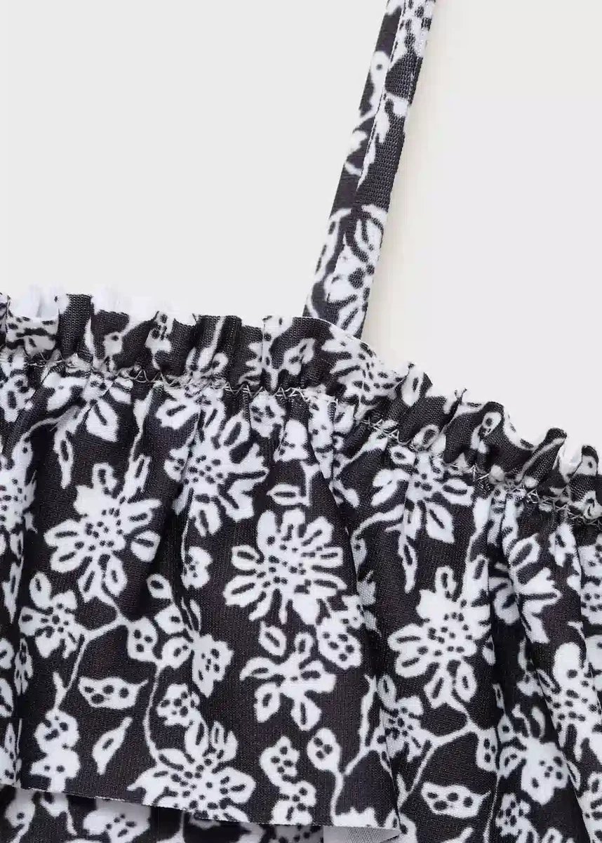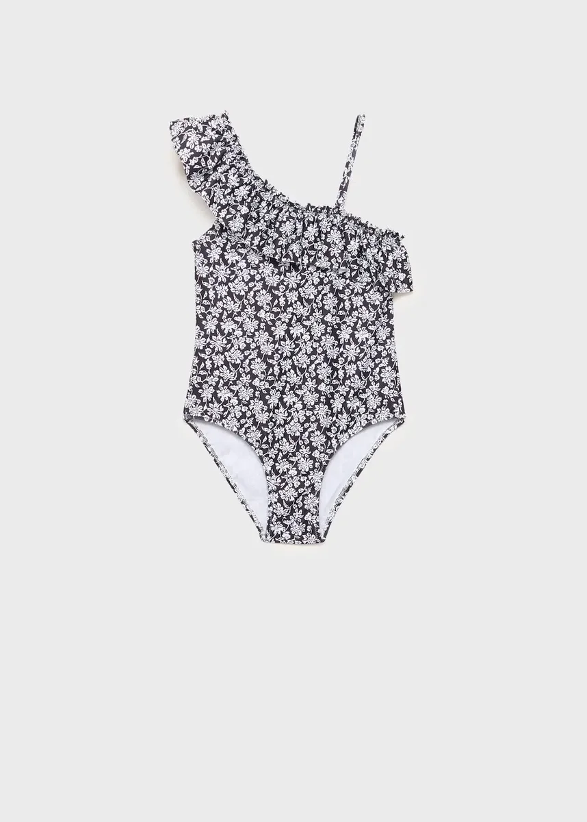 Tessuto elasticizzato. Stampa floreale. Design asimmetrico. Dettagli con volant. Scollo asimmetrico. Spalline sottili. Spalline con volant. Slip classico. Fodera interna. Collezione costumi da bagno. Prodotto promozionale.