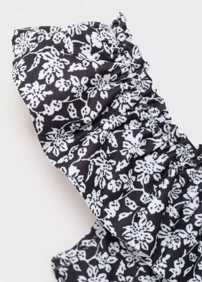Tessuto elasticizzato. Stampa floreale. Design asimmetrico. Dettagli con volant. Scollo asimmetrico. Spalline sottili. Spalline con volant. Slip classico. Fodera interna. Collezione costumi da bagno. Prodotto promozionale