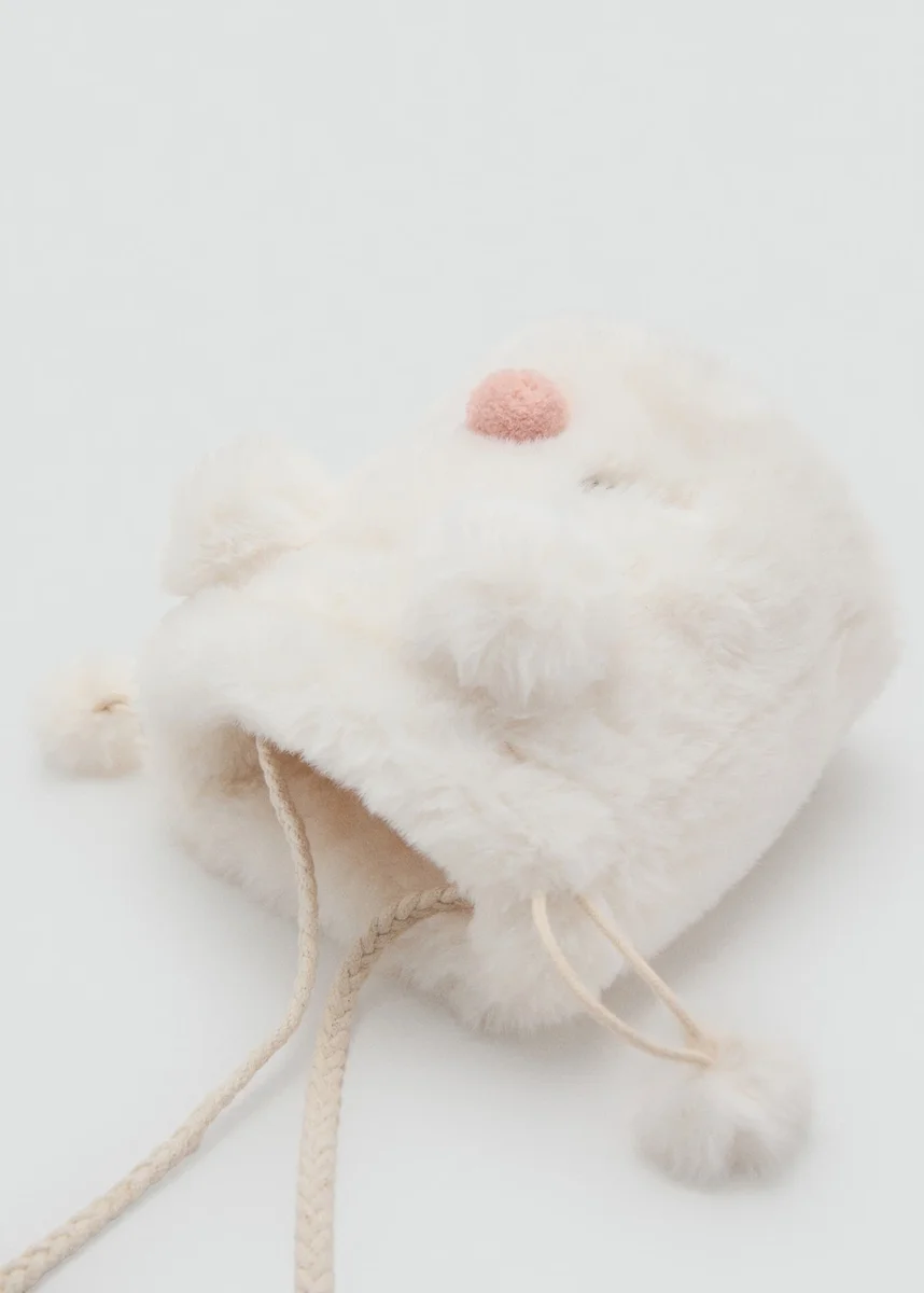 Tessuto in pelliccia. Design con gattino. Design con orecchie. Doppia tracolla. Dettagli con nappine. Chiusura con tracolla
