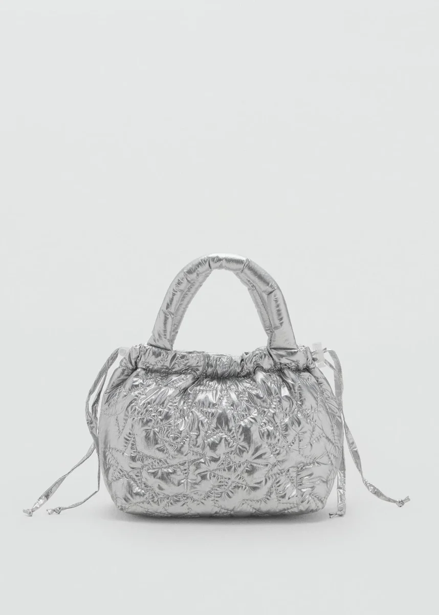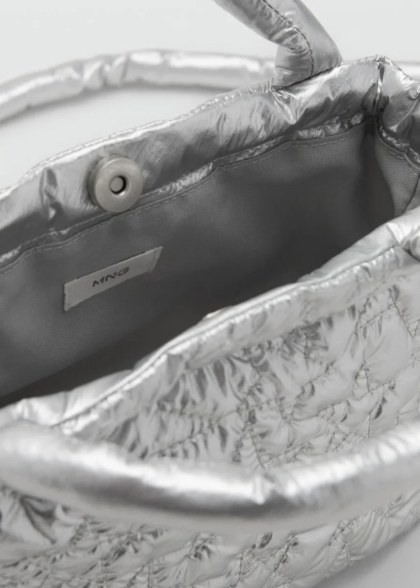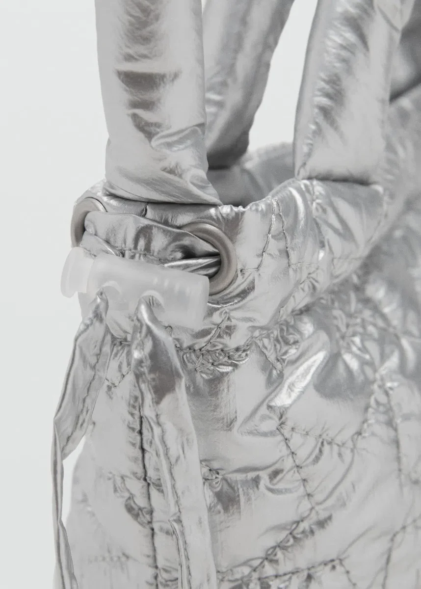 Tessuto trapuntato. Tessuto metallizzato. Design a stelle. Manico. Manico lungo. Chiusura regolabile.