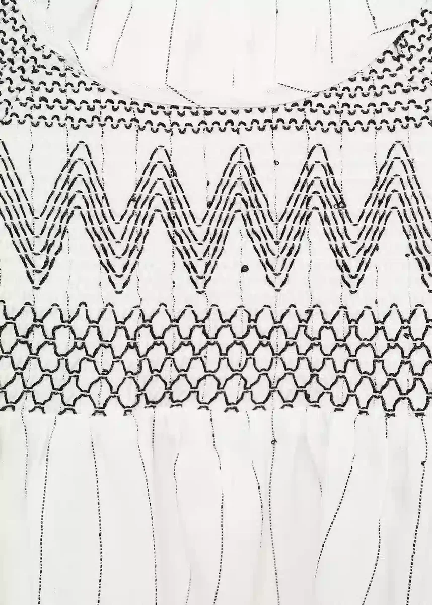 Dettagli ricamati. Girocollo. Maniche lunghe