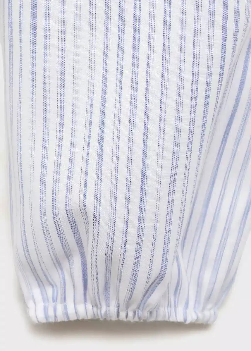 Realizzata in tessuto di cotone e poliestere, questa camicetta presenta un design a righe con corpetto arricciato. Lo scollo rotondo arricciato e le maniche lunghe con polsini elasticizzati completano il suo stile dritto. Si chiude con bottoni sul retro.