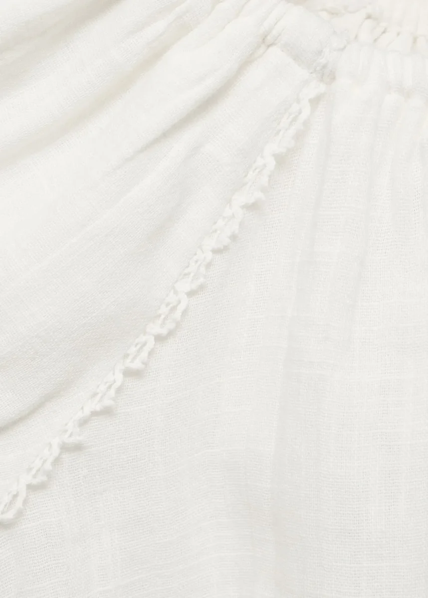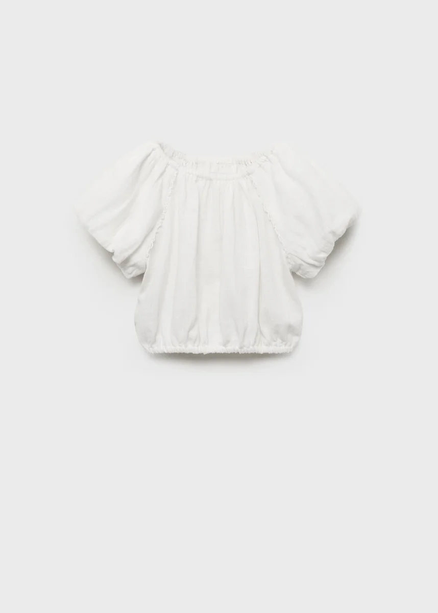 Tessuto 100% cotone. Design semplice. Scollo a barchetta elasticizzato. Maniche corte a sbuffo. Dettagli traforati. Orlo con elastico. Con fodera interna. Black Friday