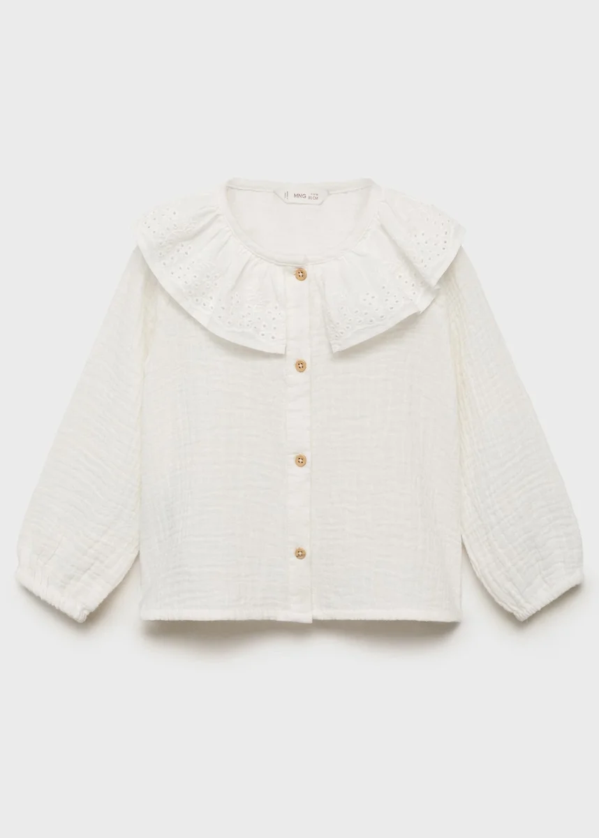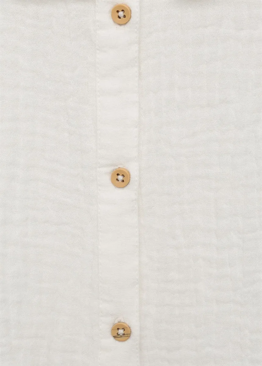 Tessuto 100% cotone. Tessuto Bambula. Design dritto. Girocollo. Collo babydoll. Maniche lunghe con polsini elasticizzati. Chiusura con bottoni sul davanti. Black Friday.