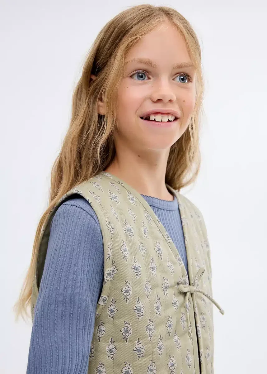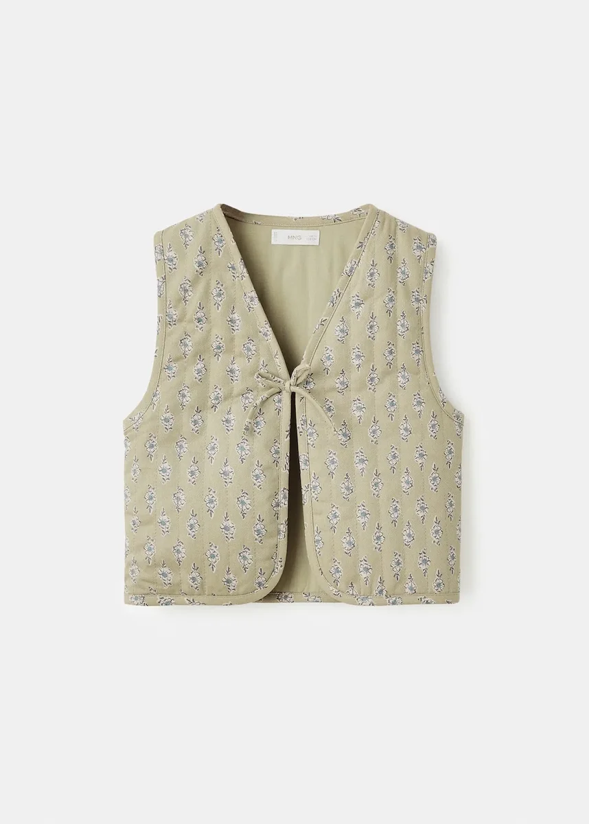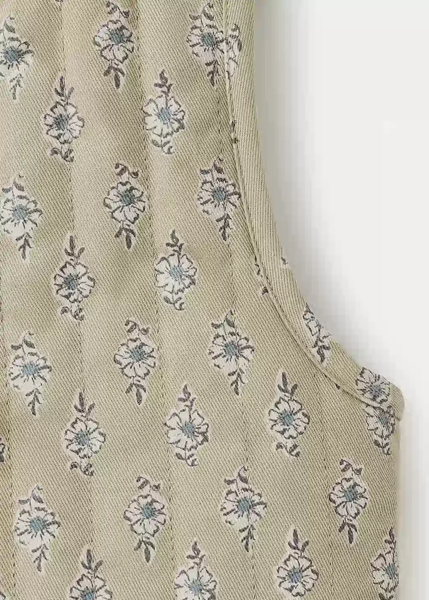 100% cotone. Stampa floreale. Scollo a V. Senza maniche. Chiusura con lacci. Total look