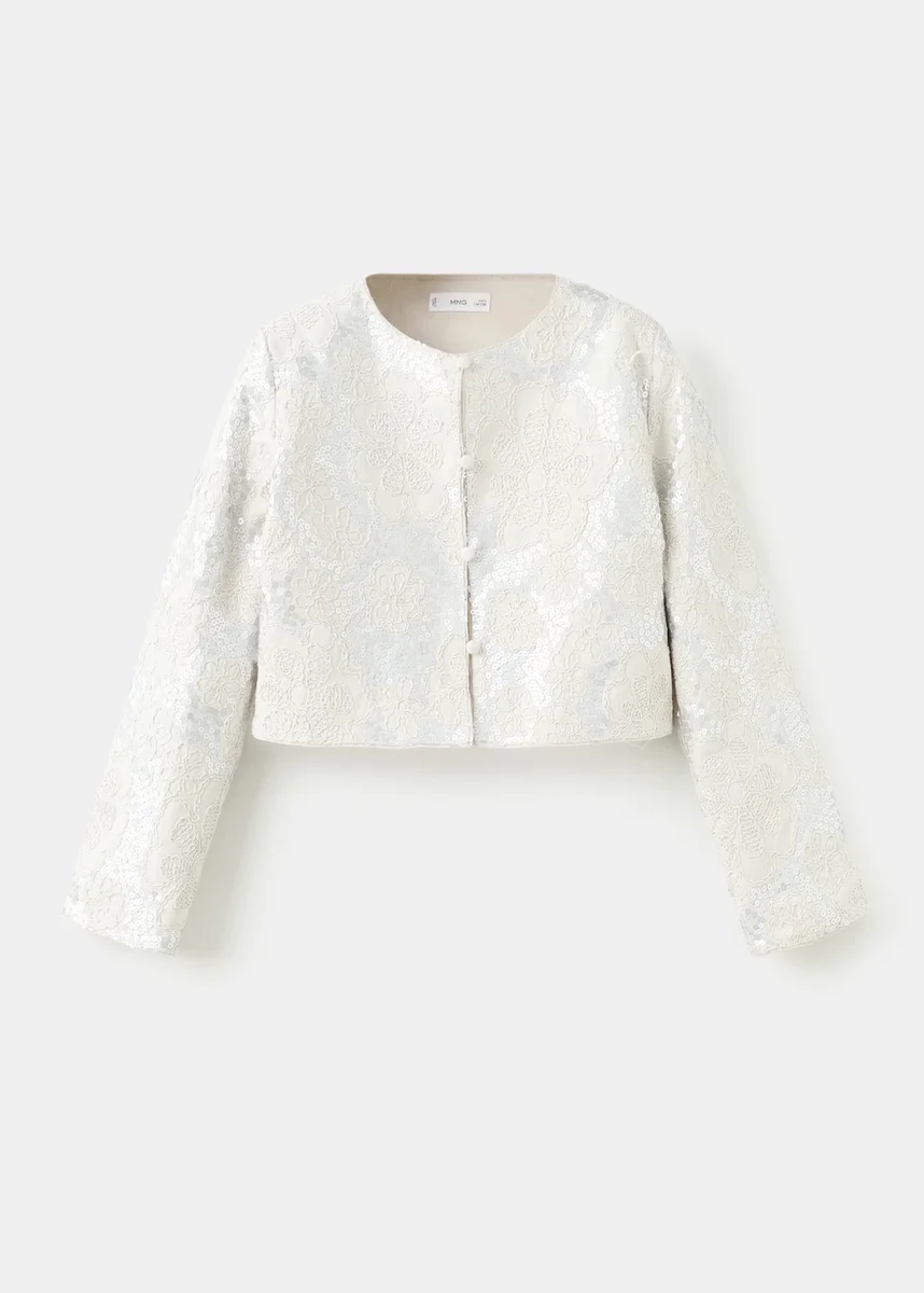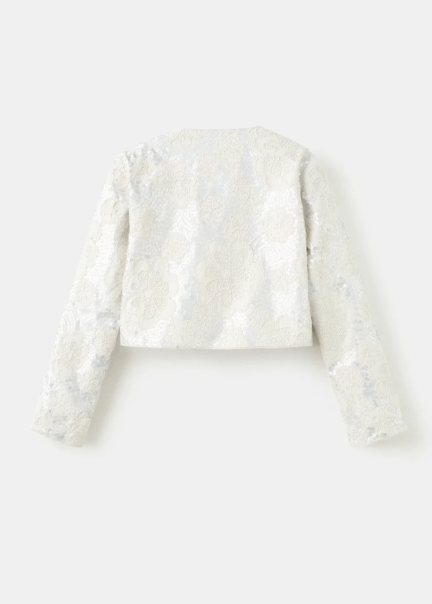 Tessuto in lino. Tessuto in cotone. Disegno ricamato. Ricamo floreale. Ricamato con paillettes. Finitura metallica. Collo rotondo. Chiusura frontale con bottoni. Fodera interna in cotone.