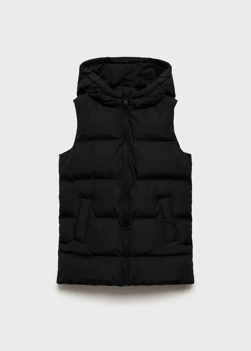Tessuto trapuntato. Tessuto impermeabile. Design lungo. Design dritto. Con cappuccio. Senza maniche. Due tasche laterali. Chiusura con cerniera. Chiusura frontale con cerniera. Lunghezza standard. Silhouette dritta. Struttura piatta leggera. Chiusura frontale. Cappuccio con risvolto. Imbottitura foderata.