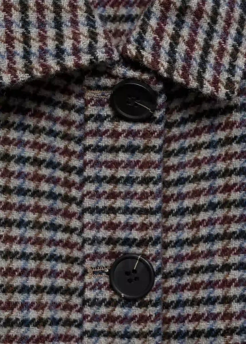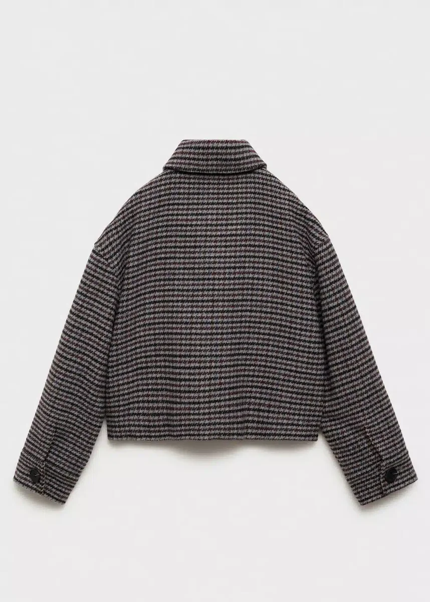 Tessuto in lana. Tessuto tweed. Taglio dritto. Collo camicia. Maniche lunghe. Chiusura frontale con bottoni. Due tasche frontali.