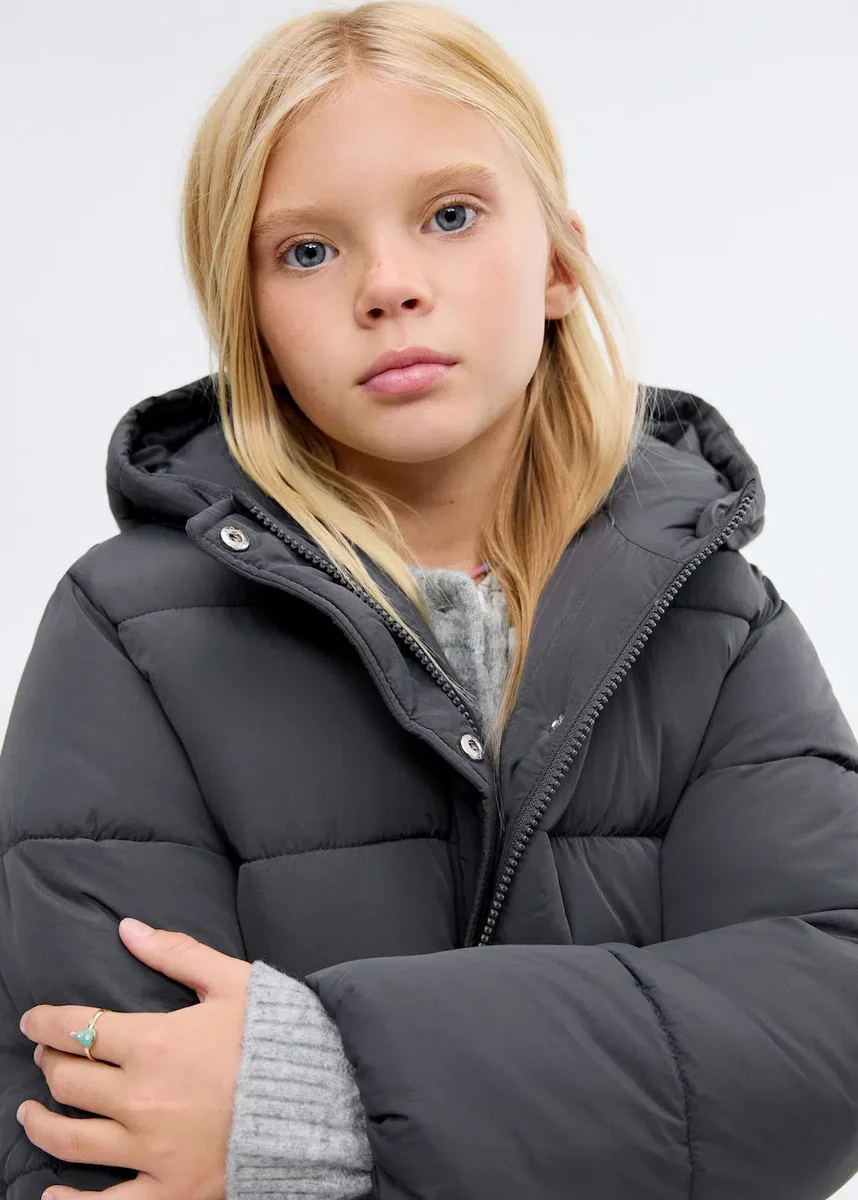 Tessuto trapuntato. Design dritto. Con cappuccio. Maniche lunghe. Due tasche laterali. Chiusura con cerniera. Laccio in vita regolabile