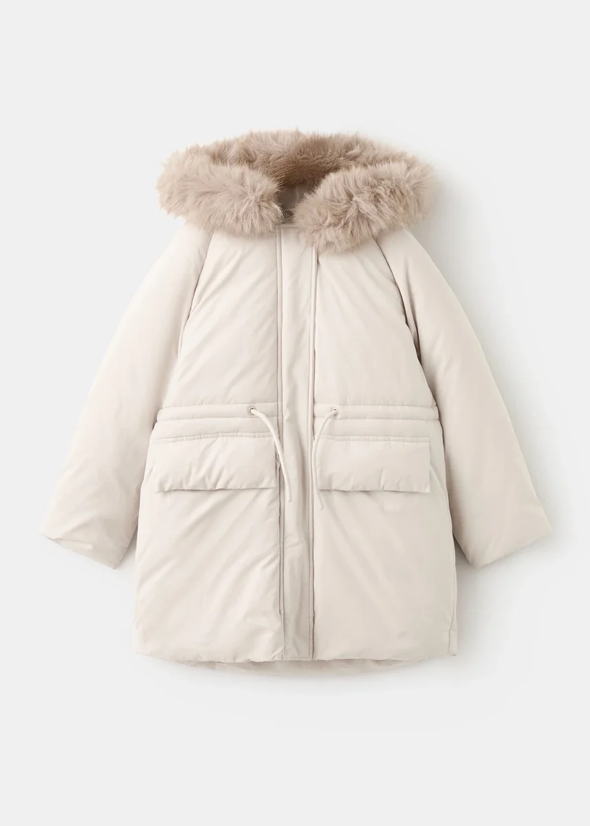Tessuto in poliestere. Tessuto in cotone. Modello dritto. Modello lungo. Maniche lunghe. Con cappuccio. Cappuccio con dettagli in pelo sintetico. Due tasche frontali. Cordino in vita. Collo staccabile effetto pelliccia. Composizione: 63% poliestere, 23% cotone, 14% poliammide. Fodera: 100% poliestere. Imbottitura: 100% poliestere. Fodera cappuccio: 63% poliestere, 23% cotone, 14% poliammide. Pelliccia cappuccio: 100% poliestere. 100% poliestere