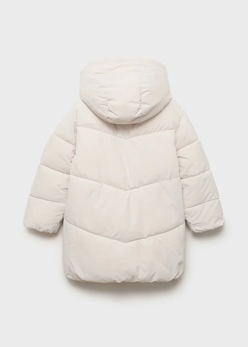 Tessuto trapuntato. Design dritto. Modello medio. Con cappuccio. Maniche lunghe. Chiusura frontale con cerniera e bottoni. Due tasche laterali. Con fodera interna