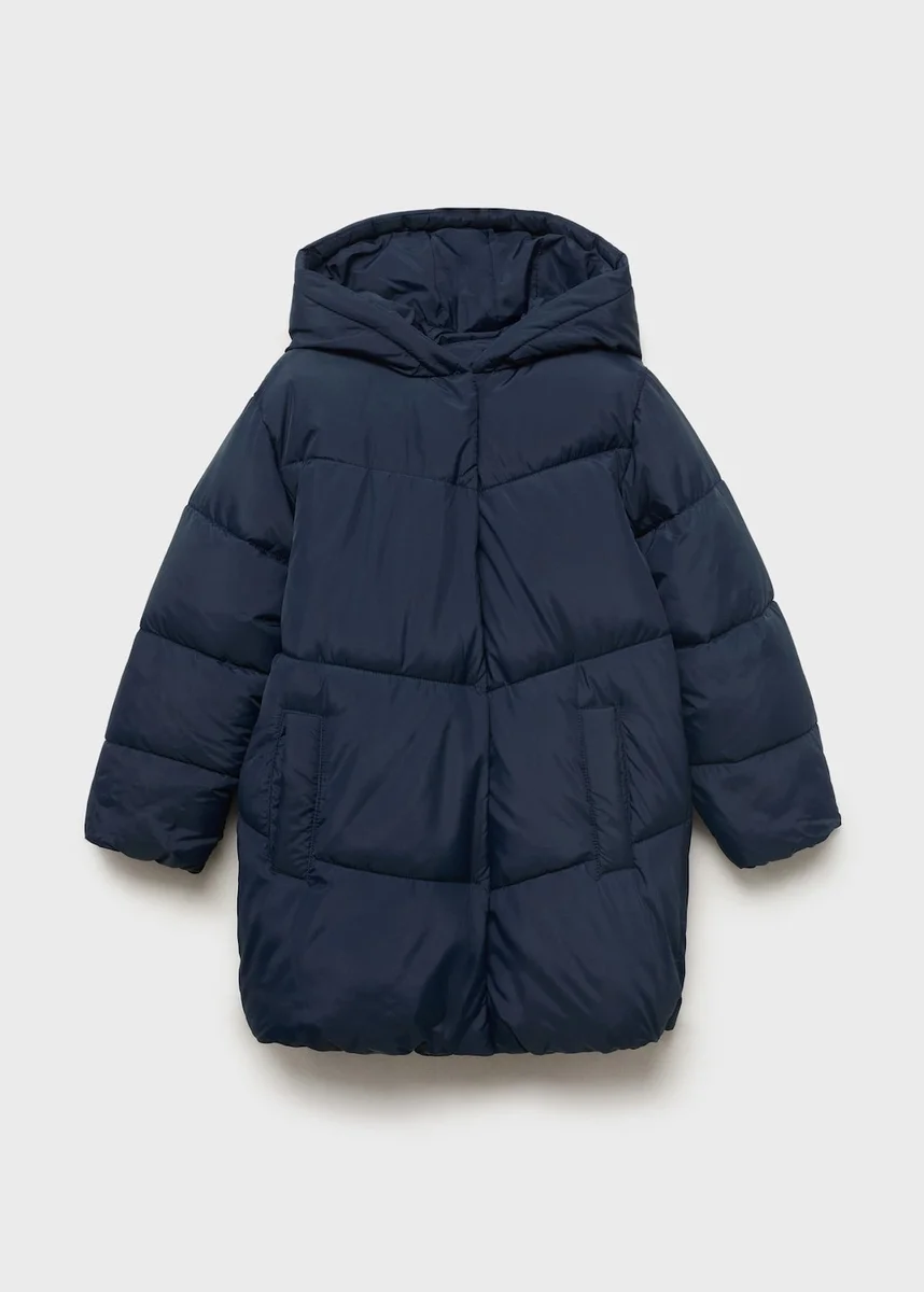 Tessuto trapuntato. Design dritto. Modello medio. Con cappuccio. Maniche lunghe. Chiusura frontale con cerniera e bottoni. Due tasche laterali. Con fodera interna