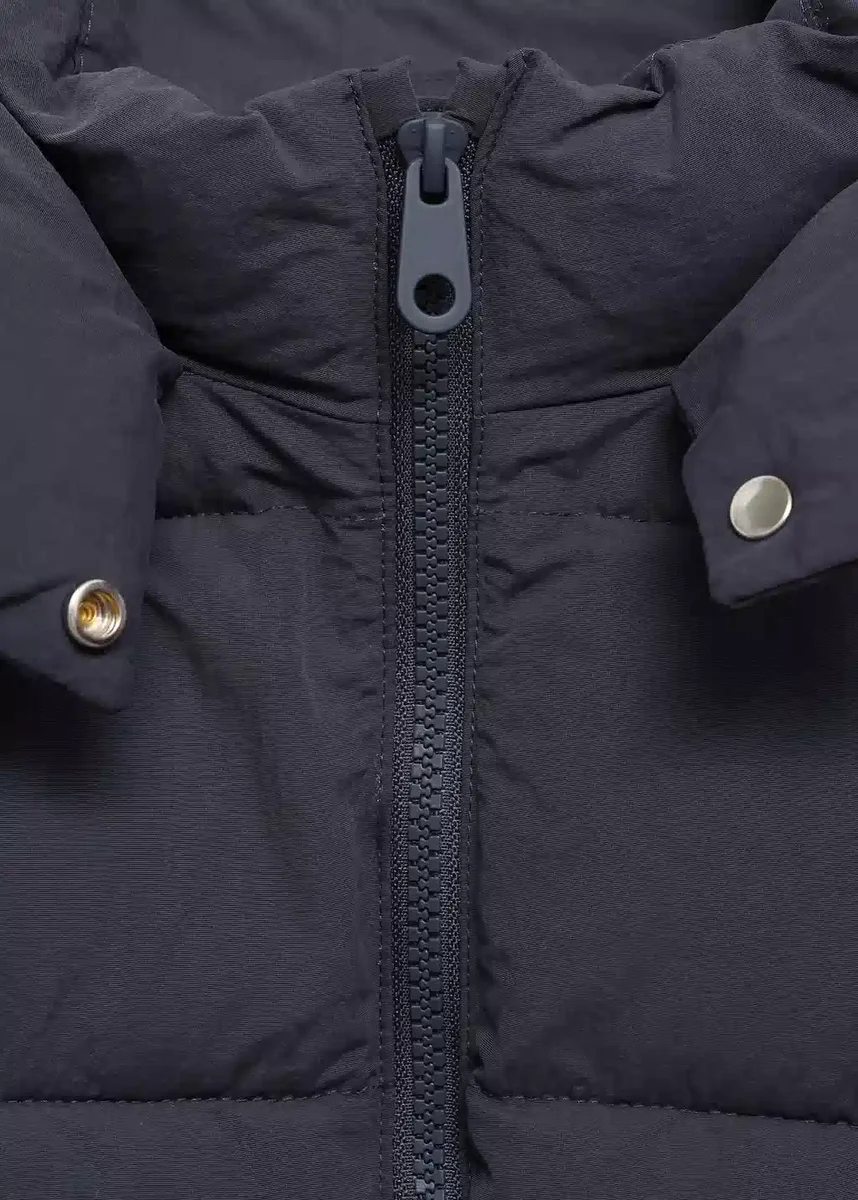 Tessuto trapuntato. Tessuto impermeabile. Design dritto. Con cappuccio. Maniche lunghe. Chiusura con cerniera. Due tasche laterali.