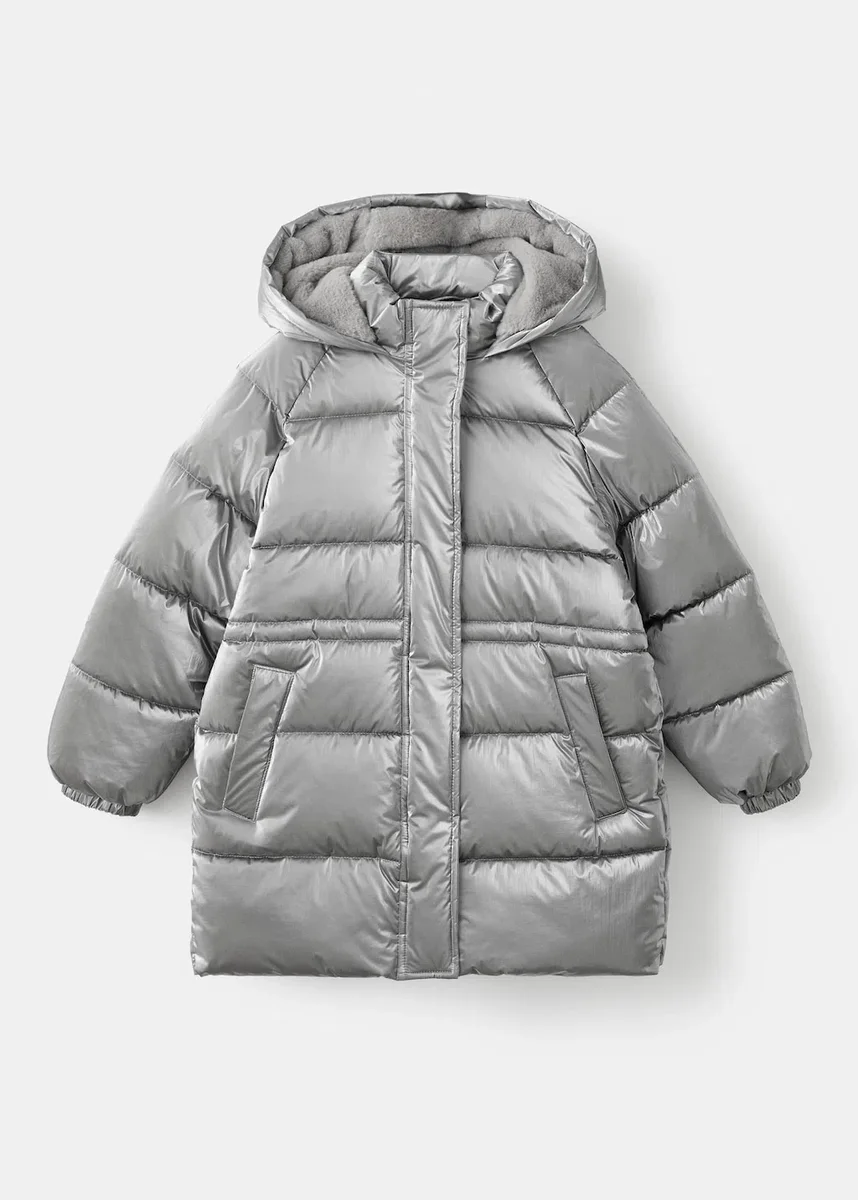 Tessuto trapuntato. Modello lungo. Silhouette dritta. Maniche lunghe con polsini elasticizzati. Chiusura frontale con zip. Due tasche laterali. Fascia elastica regolabile in vita. Imbottitura foderata. Collezione Natale.