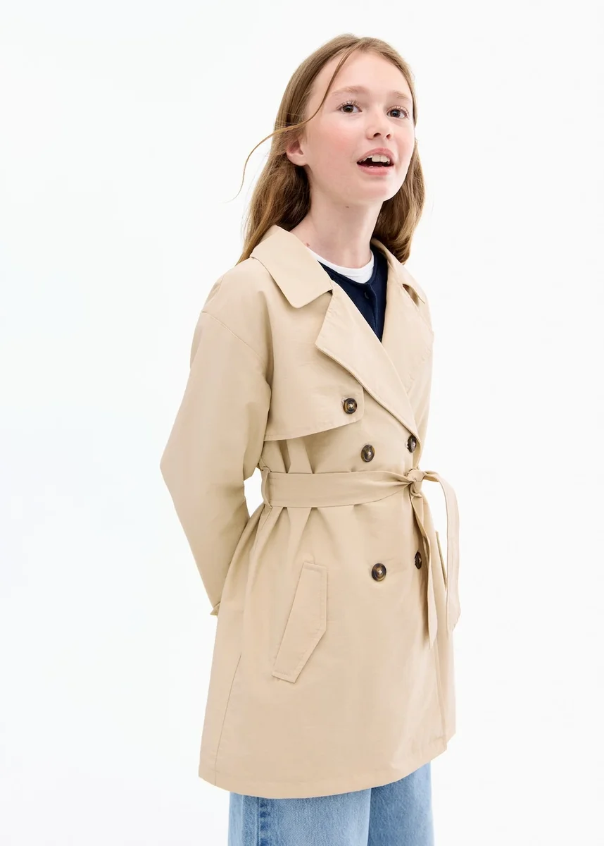 Tessuto in cotone. Design dritto. Design lungo. Collo a V con revers. Maniche lunghe con passanti. Passanti in vita. Due tasche laterali. Chiusura con doppio bottone. Con fodera interna.