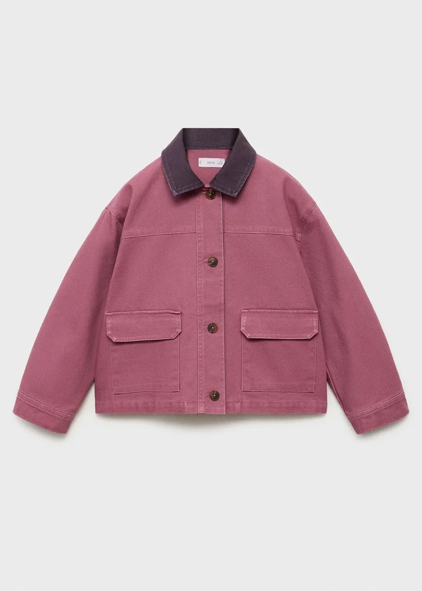 Tessuto 100% cotone. Tessuto denim. Taglio oversize. Collo con revers. Collo a contrasto. Maniche lunghe con polsini abbottonati. Chiusura frontale con bottoni. Due tasche con patta.