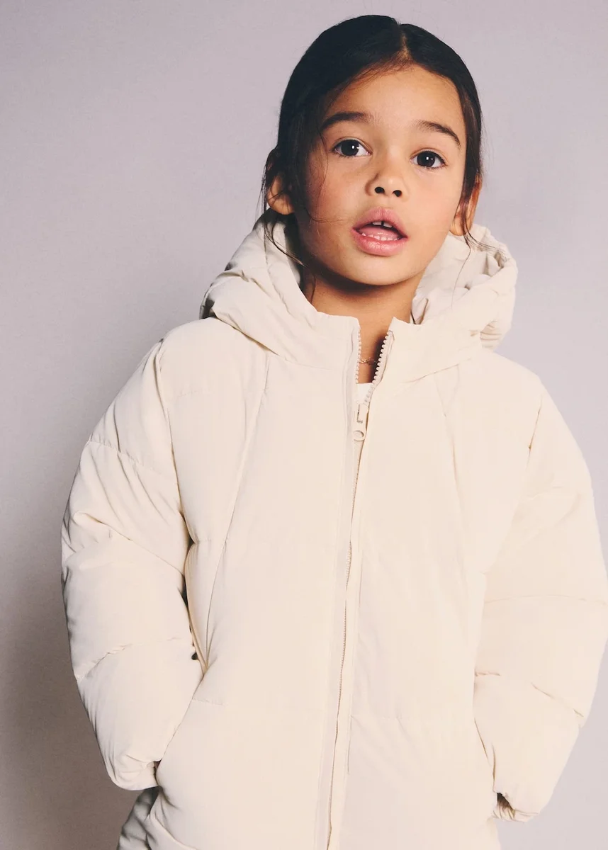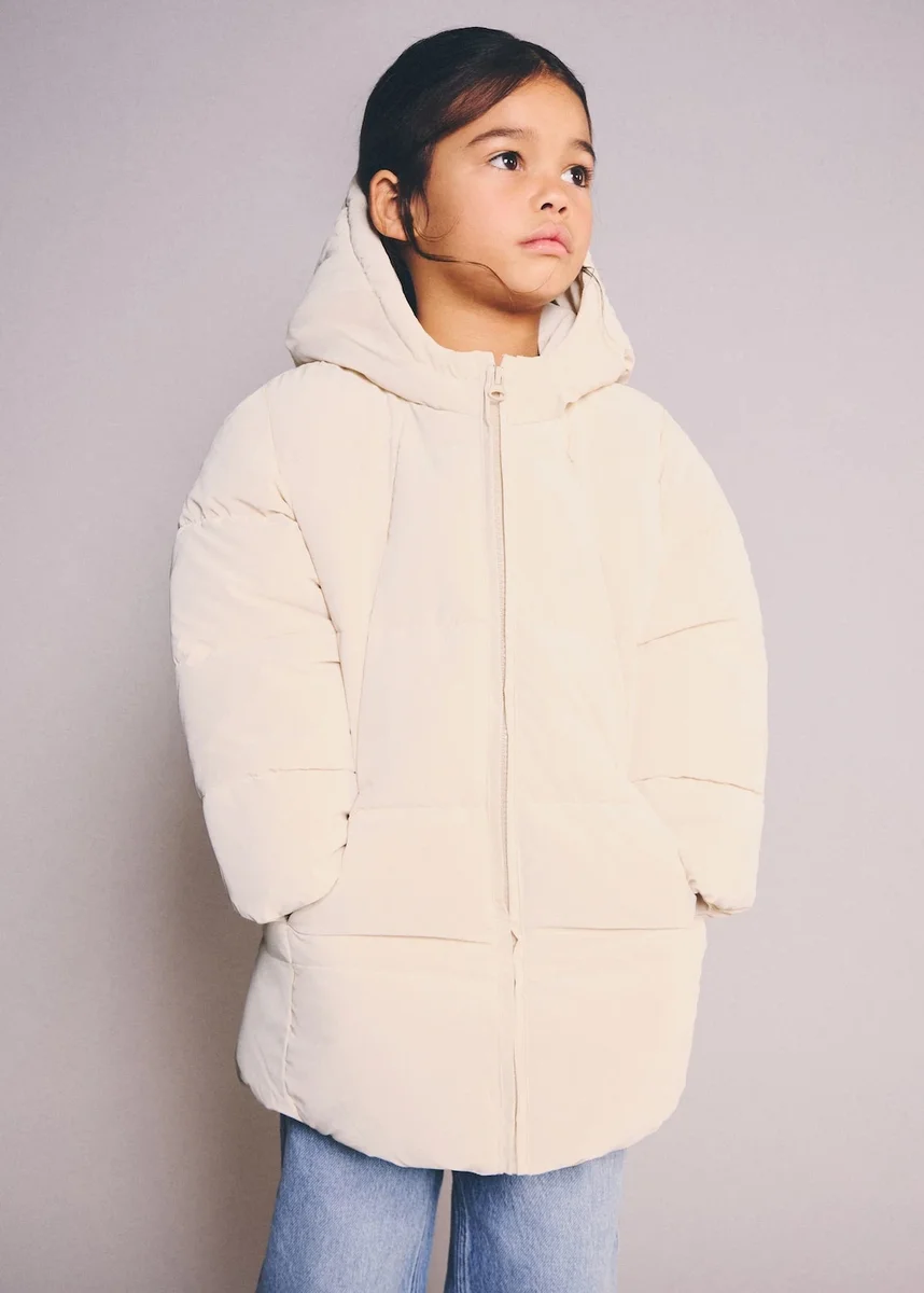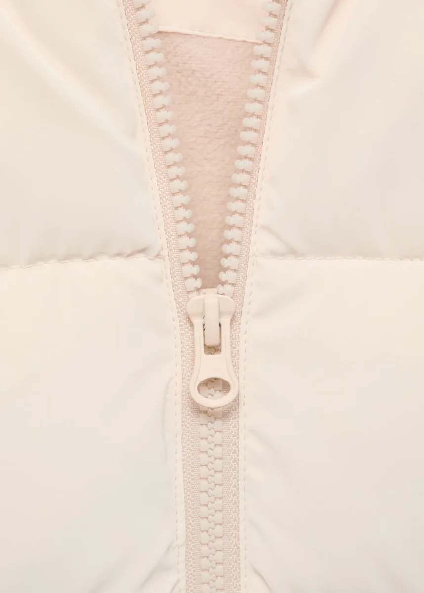 Tessuto trapuntato. Tessuto impermeabile. Design dritto. Con cappuccio. Maniche lunghe. Chiusura con cerniera. Due tasche laterali. Fodera interna in pile polare