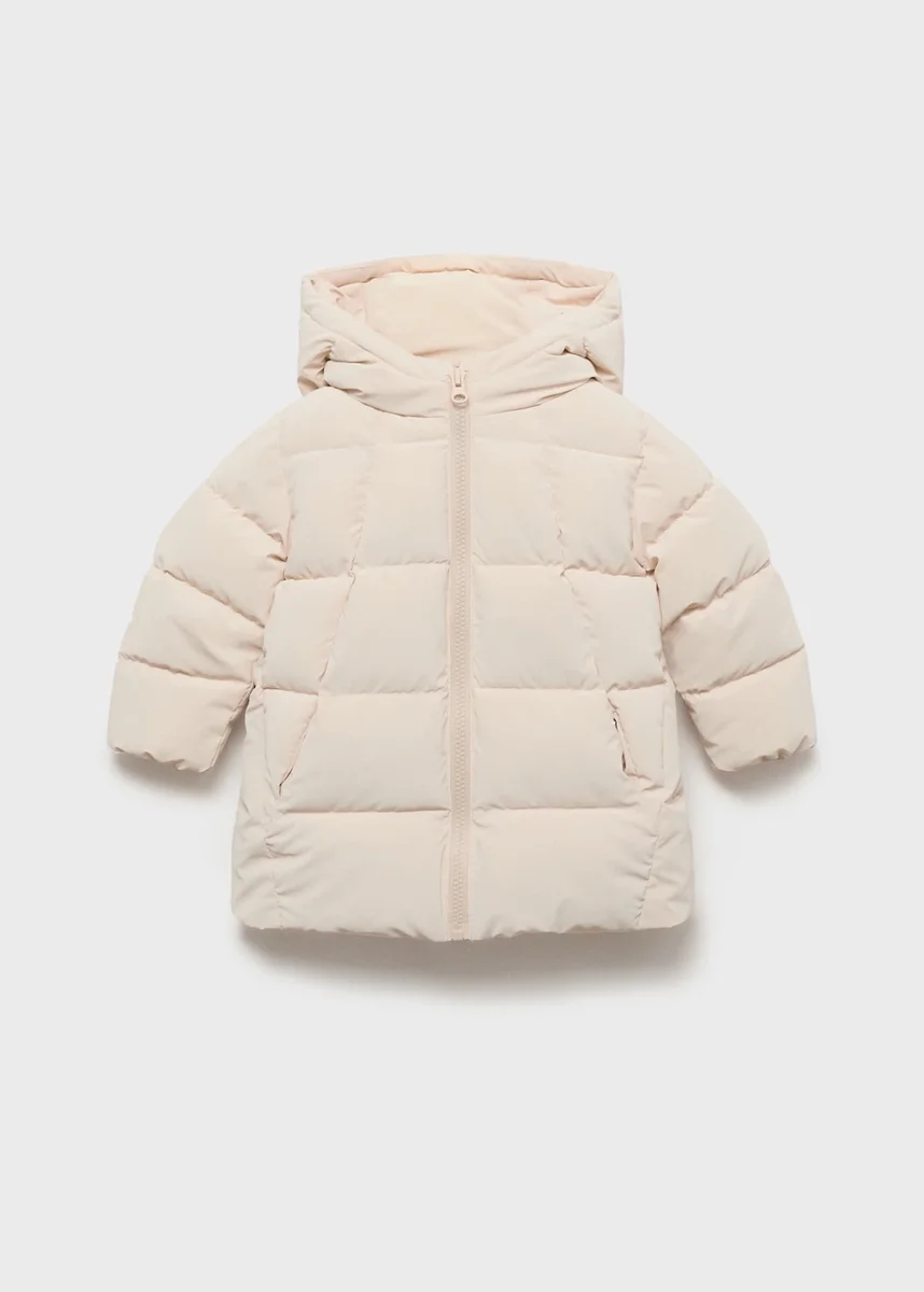Tessuto trapuntato. Tessuto impermeabile. Modello dritto. Con cappuccio. Maniche lunghe. Chiusura con cerniera. Due tasche laterali. Fodera interna in pile polare.