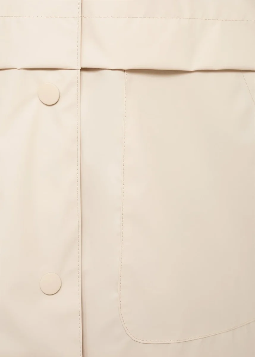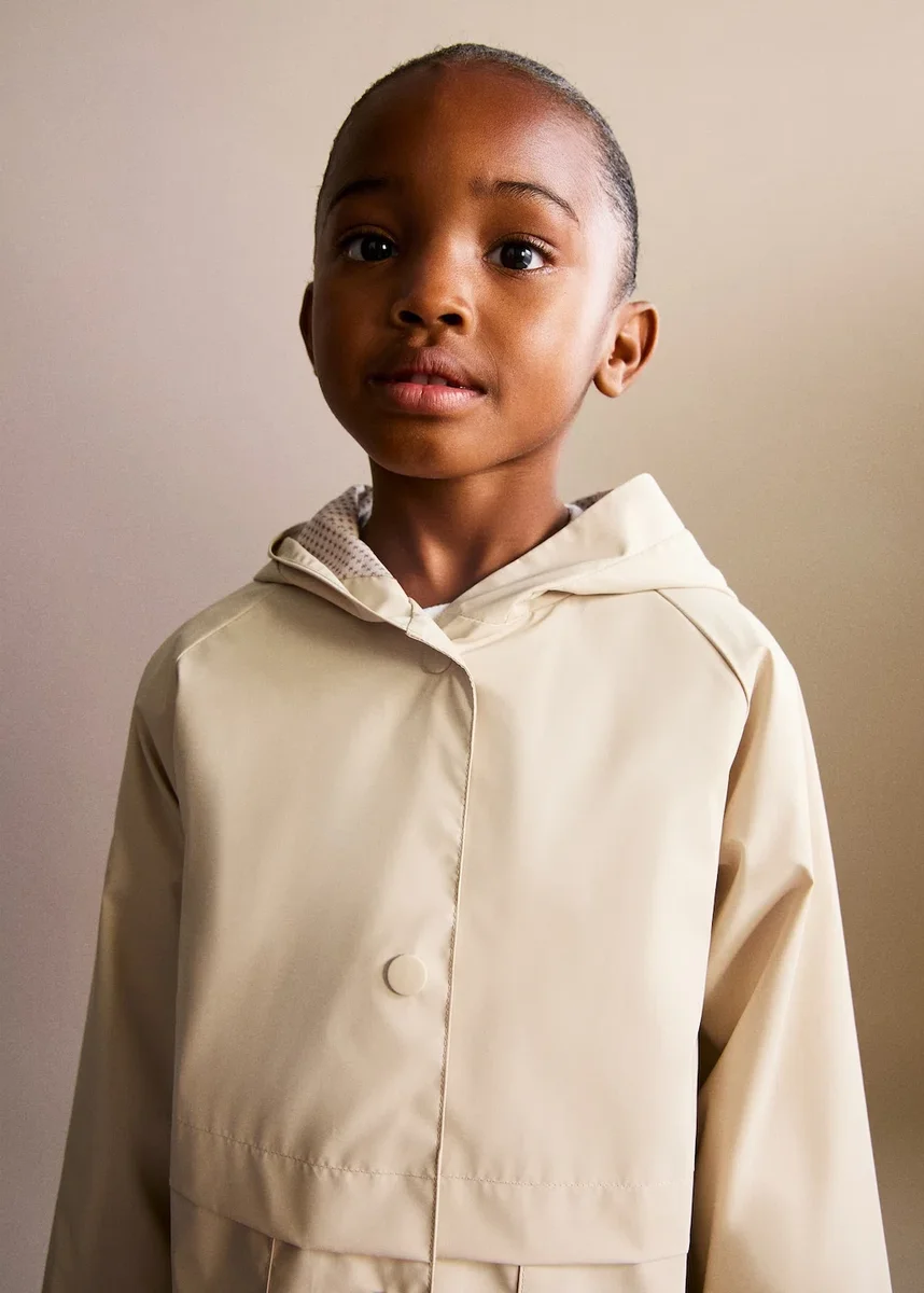 Design impermeabile. Design dritto. Cappuccio. Maniche lunghe. Etichetta per dati personali. Fodera interna. Chiusura frontale con bottoni.
