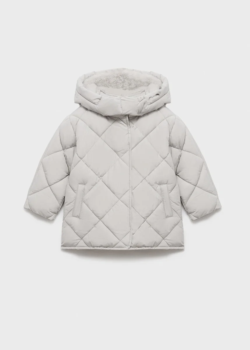 Tessuto trapuntato. Design dritto. Fodera effetto pelliccia. Cappuccio. Maniche lunghe. Tasche laterali.
