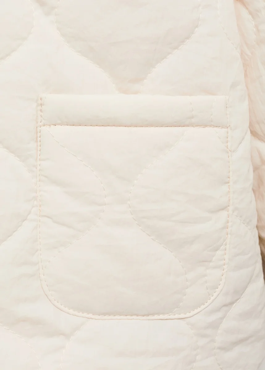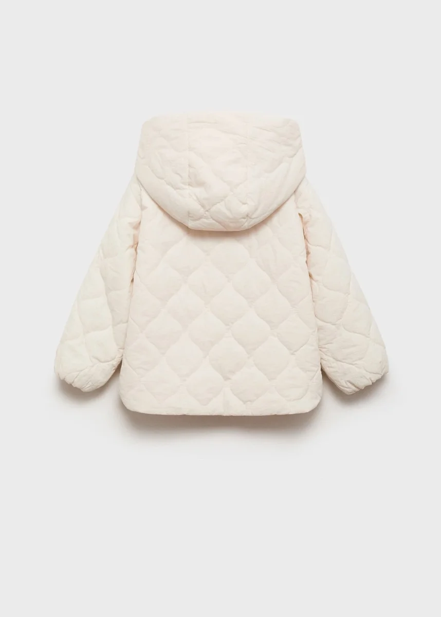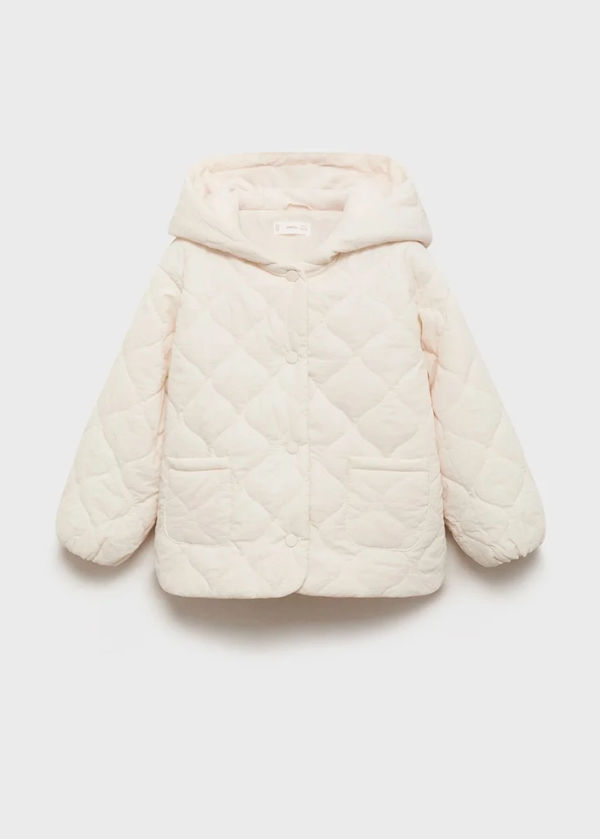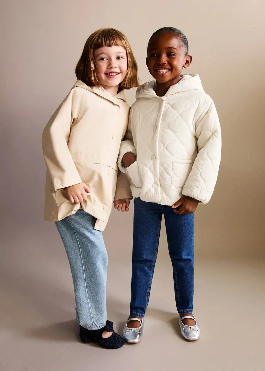 Tessuto trapuntato. Design dritto. Con cappuccio. Maniche lunghe con polsini elasticizzati. Chiusura frontale con bottoni. Due tasche applicate sul davanti.