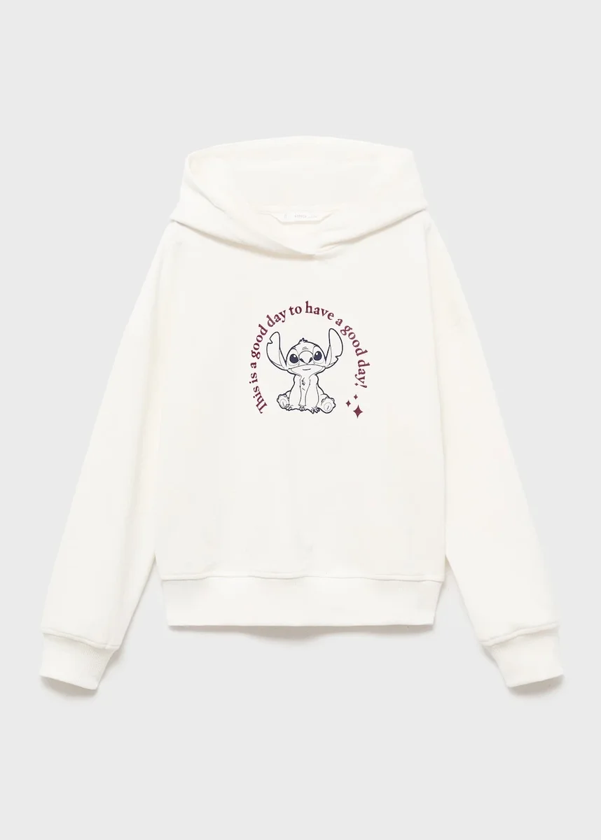 Lilo e Stitch. Tessuto 100% cotone. Design dritto. Con cappuccio. Maniche lunghe. Polsini a costine. Immagine stampata sul davanti. Licenze