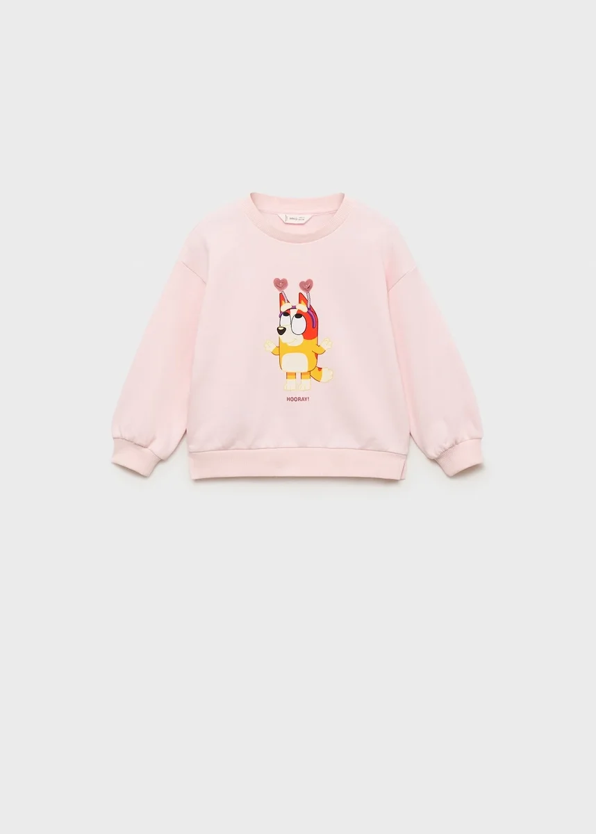 Tessuto 100% cotone. Modello lungo. Disegno stampato. Stampa Bluey. Girocollo. Maniche lunghe. Collo, polsini e orlo a costine. Immagine stampata sul davanti. Licenze