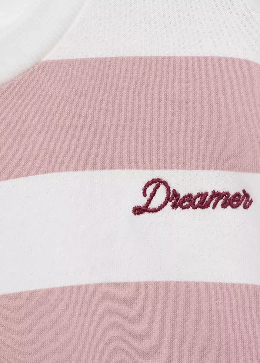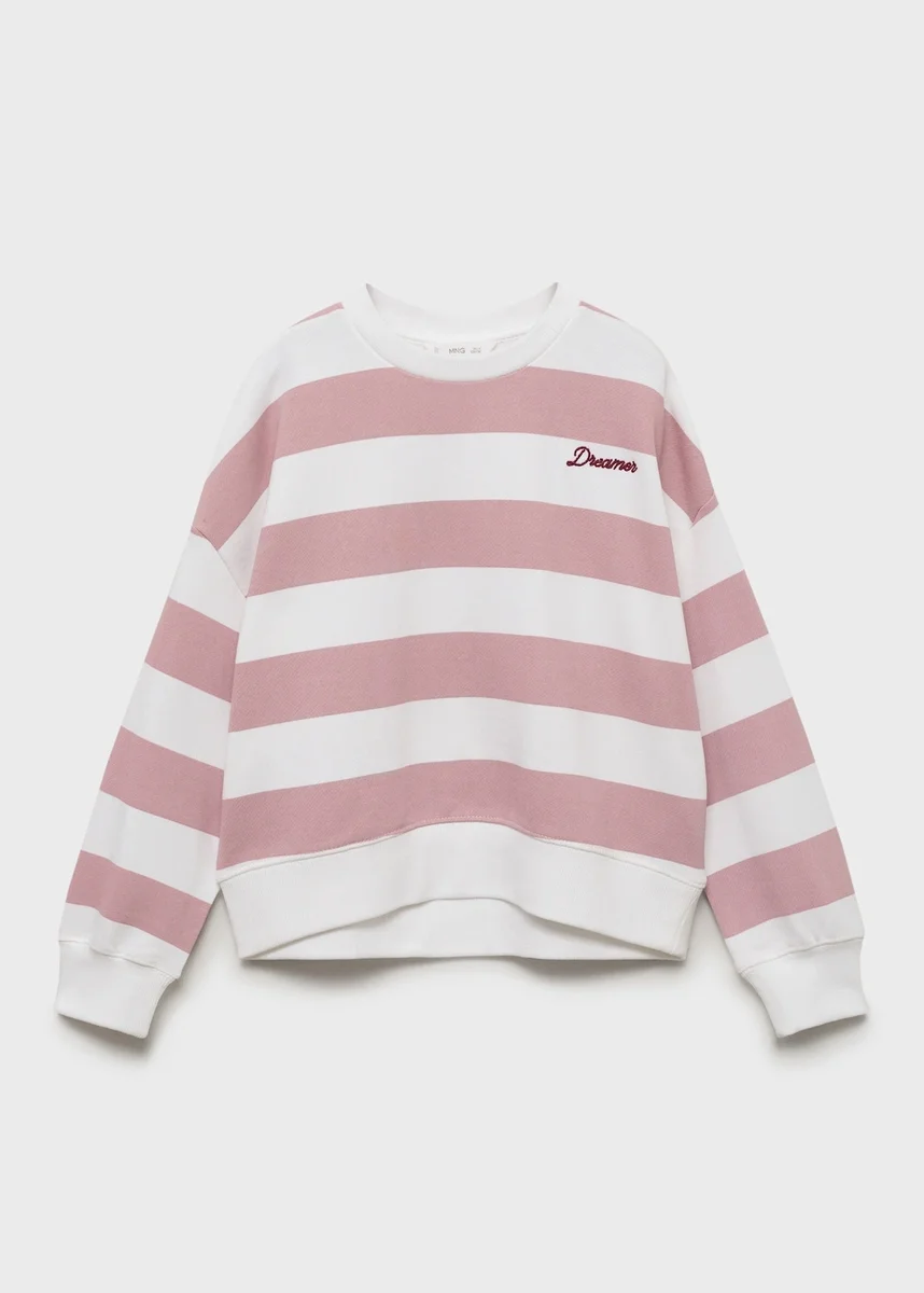 Tessuto 100% cotone. Design oversize. Design a righe. Girocollo. Maniche lunghe. Collo, polsini e orlo a costine. Dettagli ricamati.