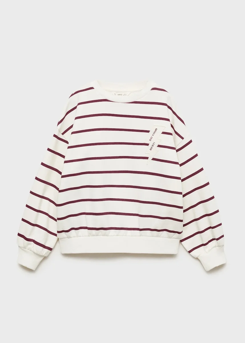 Tessuto 100% cotone. Tessuto a righe. Design dritto. Design ricamato. Ricamo fulmine. Girocollo. Maniche lunghe. Collo, polsini e orlo a costine.