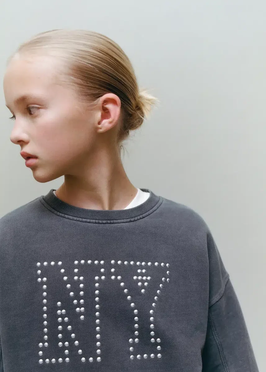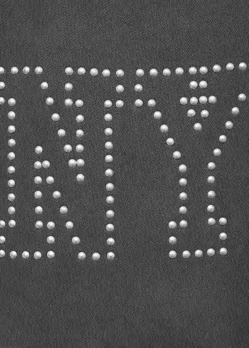 Tessuto 100% cotone. Modello oversize. Girocollo. Maniche lunghe. Dettagli cuciture. Decorazioni con borchie. Total look. Black Friday.