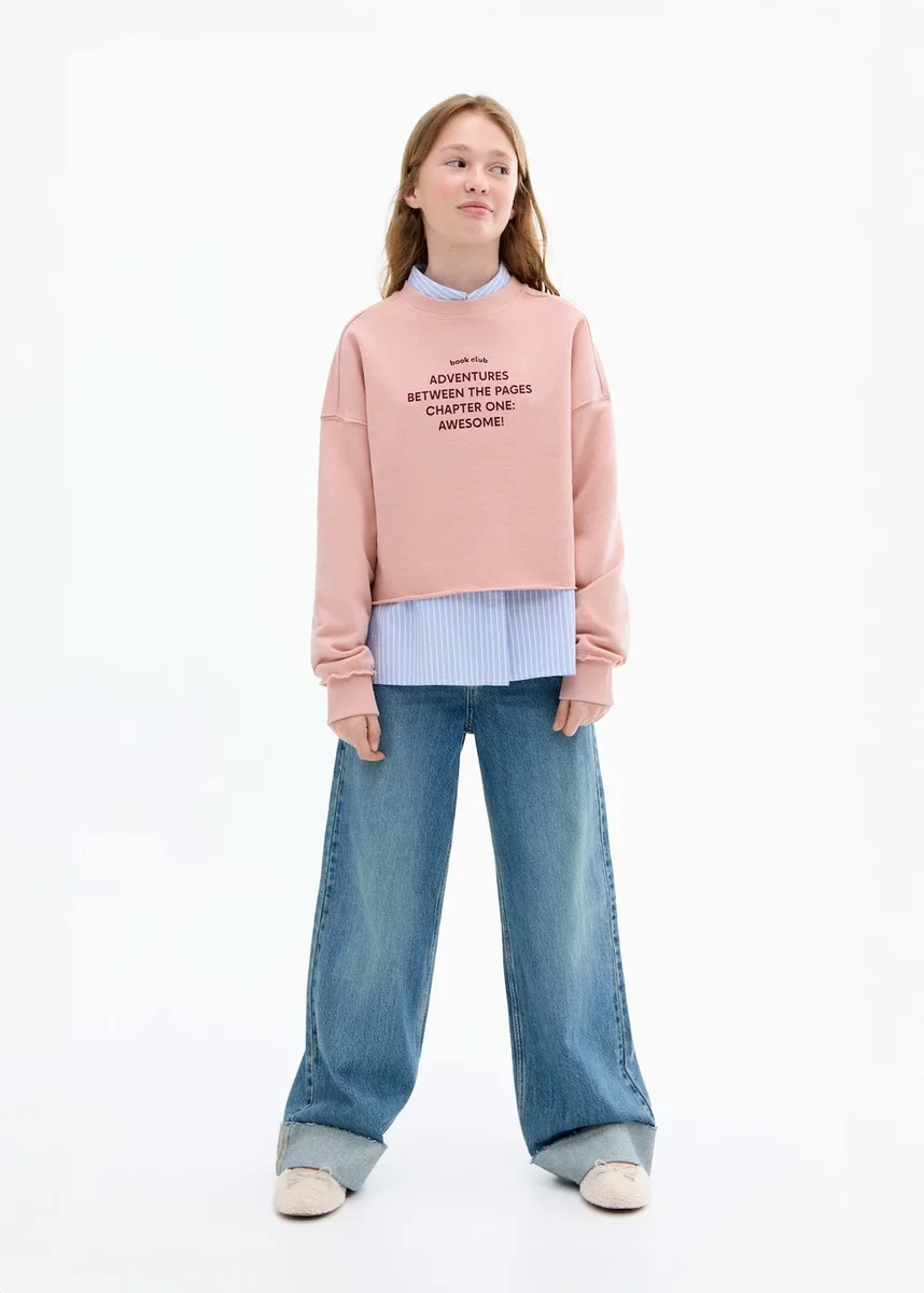 Tessuto 100% cotone. Modello dritto. Disegno stampato. Girocollo. Maniche lunghe. Orlo senza cuciture. Black Friday.