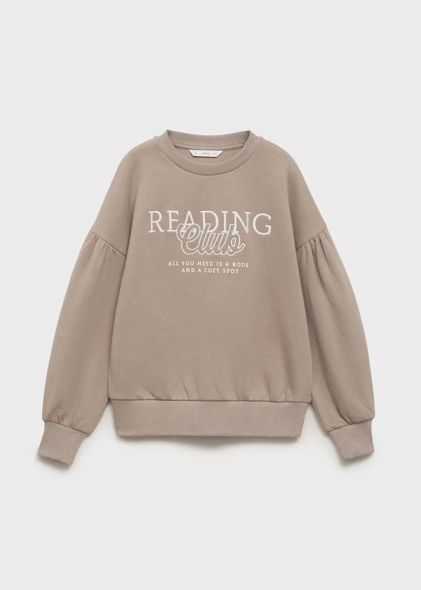 Tessuto 100% cotone. Modello dritto. Motivo ricamato. Collo, polsini e orlo a costine. Girocollo. Maniche lunghe. Dettaglio arricciato sulle maniche. Ricamo sul davanti.