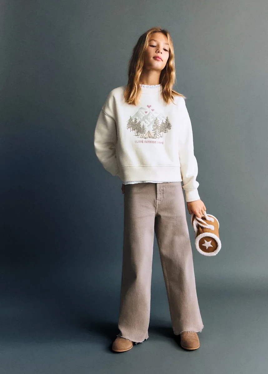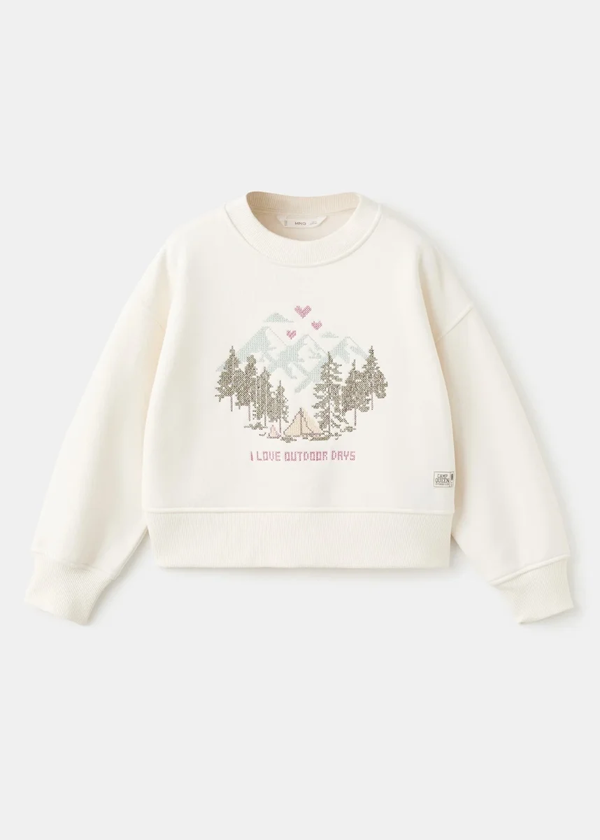 Tessuto in cotone. Design jacquard. Design dritto. Ricami decorativi. Ricami sul davanti. Girocollo. Maniche lunghe. Collo, polsini e orlo a costine.