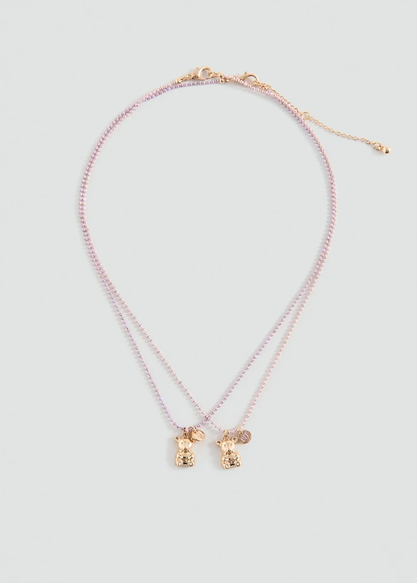 Confezione da 2. Design metallico. Ciondolo a forma di orsacchiotto. Chiusura con gancio.