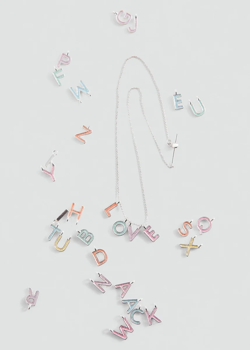 Design metallico. Perline combinate. Perline con lettere. Chiusura a scatto