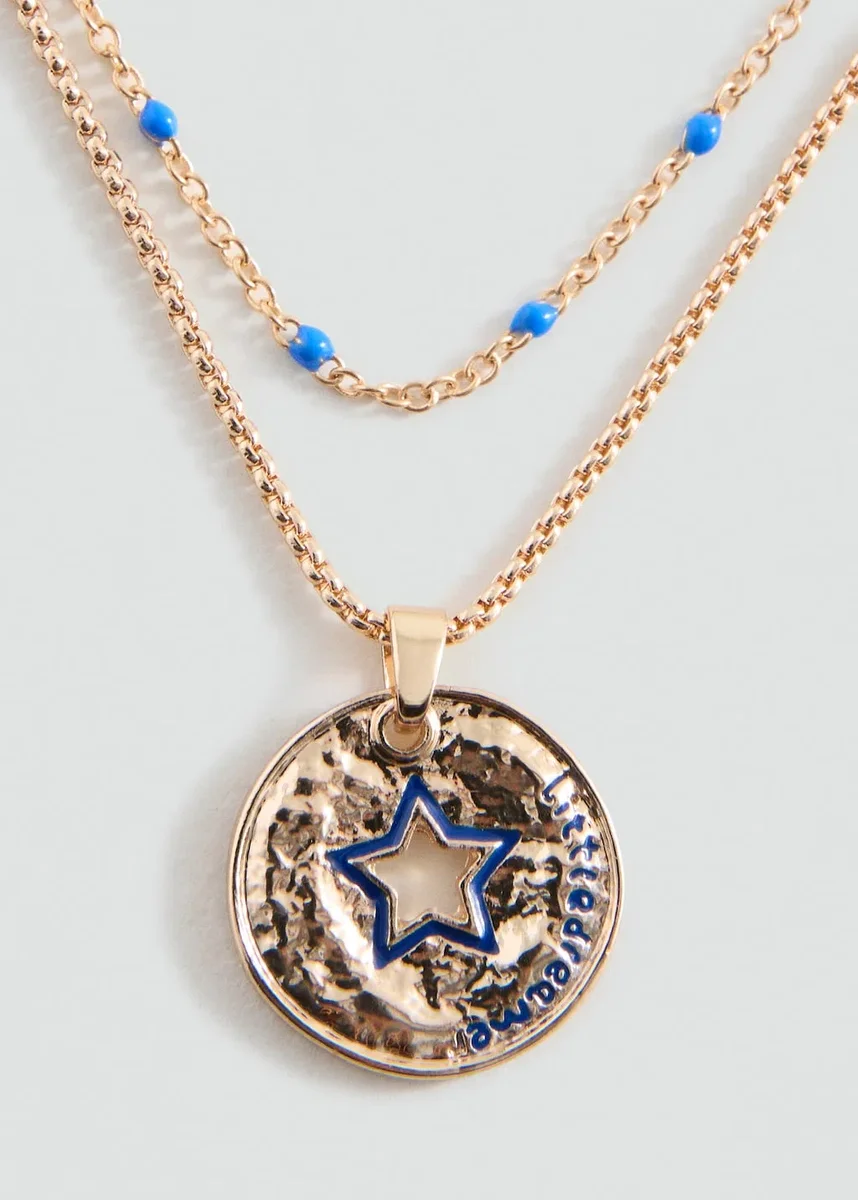 Confezione da 2. Design metallico. Pendente con perla metallica circolare. Dettaglio a stella. Chiusura con gancio.