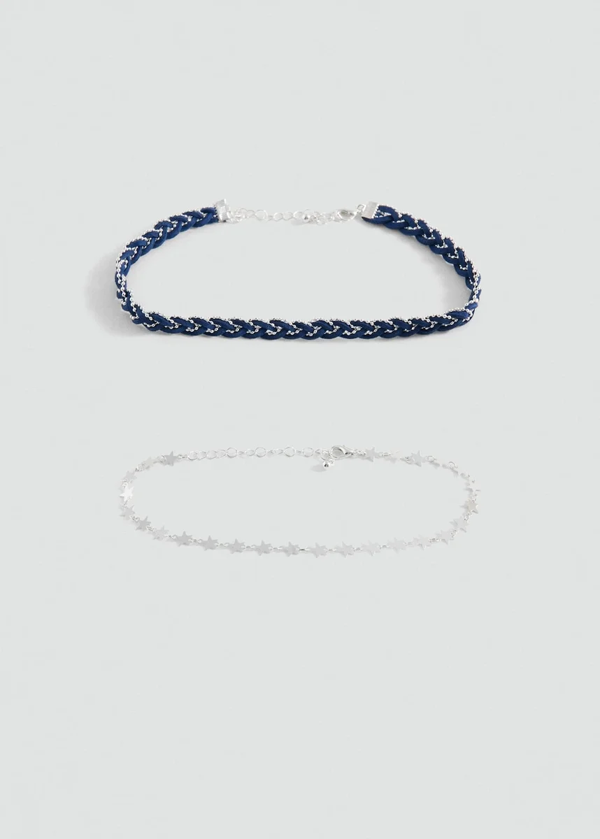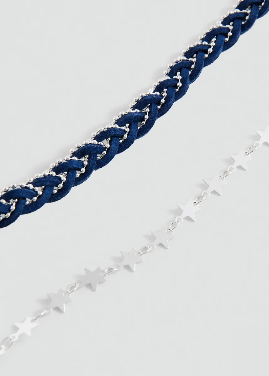 Confezione da 2. Modello girocollo. Stile combinato. Disegno a stella. Chiusura con gancio