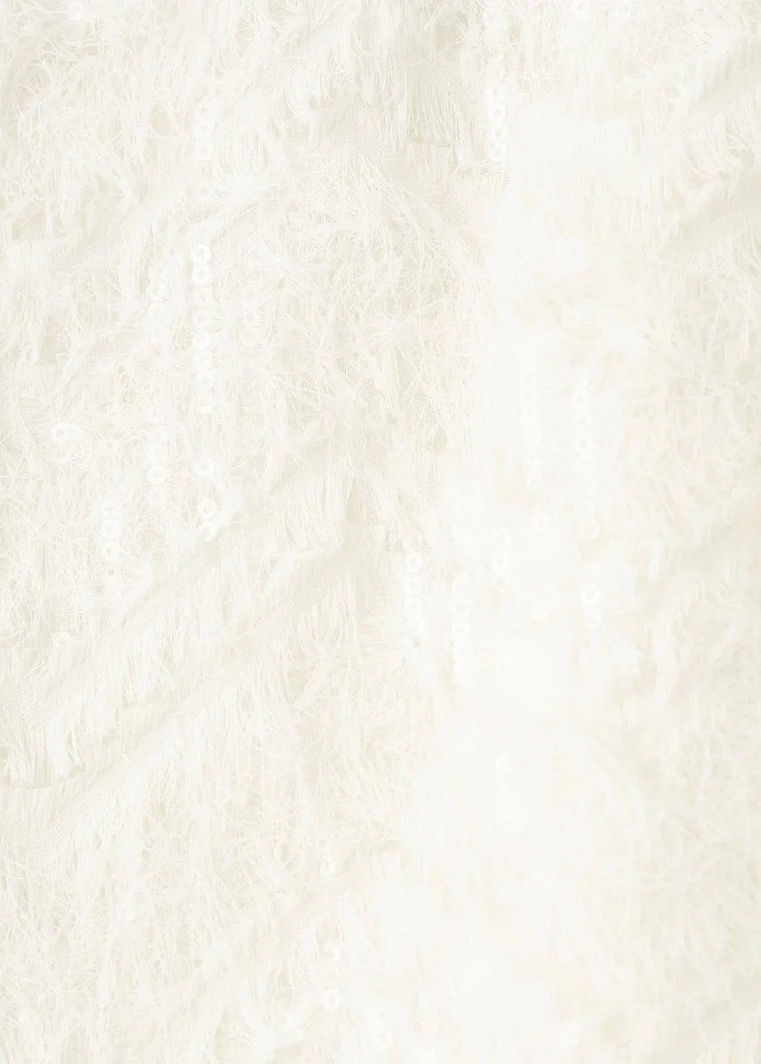 Realizzata in tessuto di poliestere, questa gonna presenta un design svasato con frange e dettagli in paillettes. La cintura elasticizzata garantisce il massimo comfort. Fa parte della collezione Natale, party ed eventi