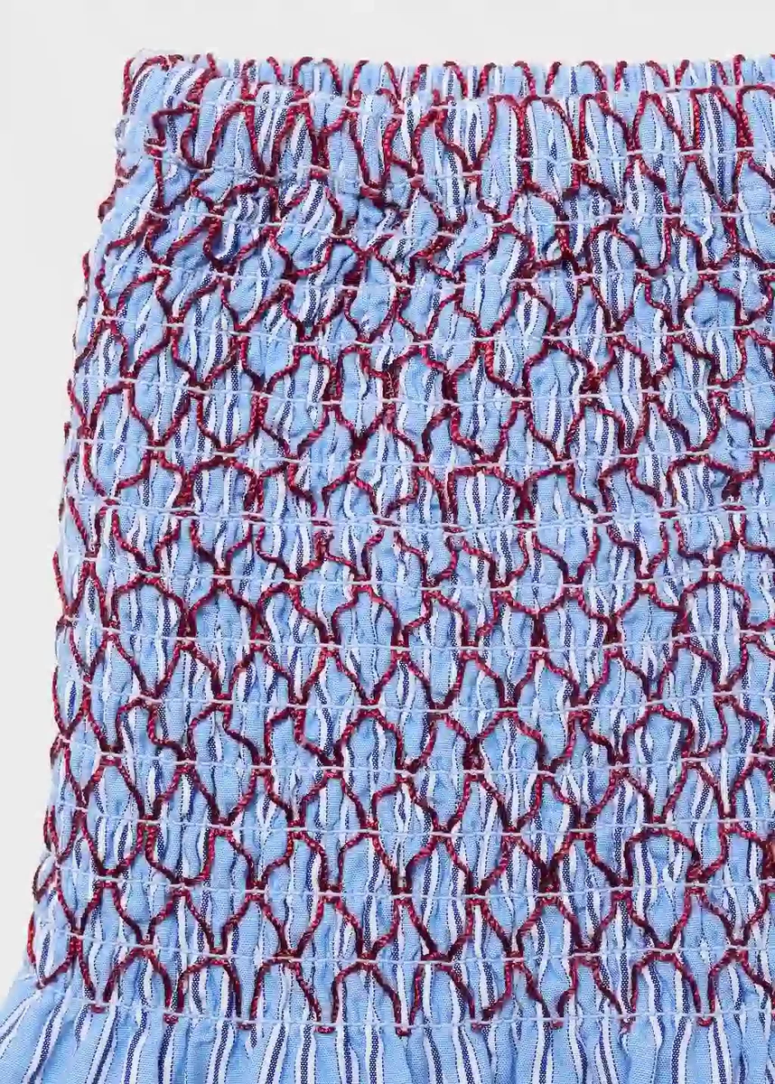 Realizzata in tessuto di cotone, questa gonna presenta un design a righe senza chiusura. La sua silhouette ad A è completata da una cintura elastica a nido d’ape e da dettagli ricamati, ideali per un total look.